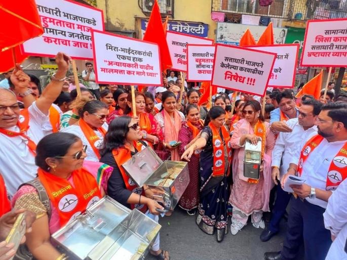 पहिल्याच महासभेत सत्ताधारी भाजपाने भाड्यावरील मालमत्ताच्या करात वाढ करण्याचा निर्णय घेतलाच शिवाय मालमत्ता कराच्या कर योग्य मूल्य दरात ६० टक्के पेक्षा जास्त वाढ केली आहे. कर योग्य मूल्य दरात वाढ केल्याने मालमत्ता कर मध्ये मोठी वाढ होणार आहेच शिवाय रस्ता कर, पाणी पुरवठा लाभकर, मलप्रवाह सुविधा कर, वृक्ष कर, शिक्षण कर, अग्निशमन कर देखील वाढणार आहेत. ह्या कर वाढी वरून टीकेची झोड सुरु आहे. याविरोधात पालिका मुख्यालया बाहेर शिवसैनिकांनी भीक मागत भाजपा विरोधात घोषणाबाजी केली. त्यानंतर शिवसैनिक हे मुख्यालयात शिरले. दुसऱ्या मजल्यावर भाजपा महापौर डिम्पल मेहता यांच्या दालना बाहेर ठिय्या मारत करवाढ रद्द करण्याची मागणी केली.