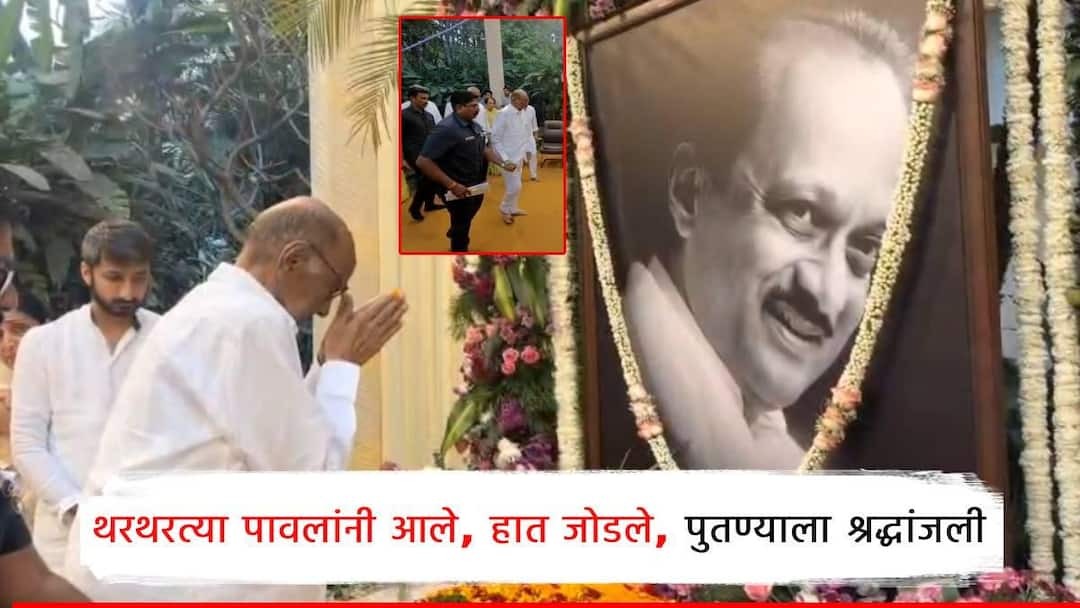 थरथरत्या पाऊलांनी पुढे येत, सुरक्षा रक्षकाच्या हाताला हात धरुन शरद पवार पुढे आले. त्यानंतर, अजित पवारांच्या प्रतिमेसमोर डोकं खाली करुन हात जोडले. आपल्या लाडक्या पुतण्याला काकांकडून श्रद्धांजली वाहतानाचा हा क्षण सगळ्यांच्या काळजाला हात घालणारा होता. यावेळी, संपूर्ण पवार कुटुंबीय भावुक झाले. उपमुख्यमंत्री सुनेत्रा पवार, पार्थ पवार, शरद पवार, जय पवार, नीता पाटील, विजया पाटील, श्रीनिवास पवार, रोहित, राजेंद्र, रणजित पवार याठिकाणी उपस्थित होते.