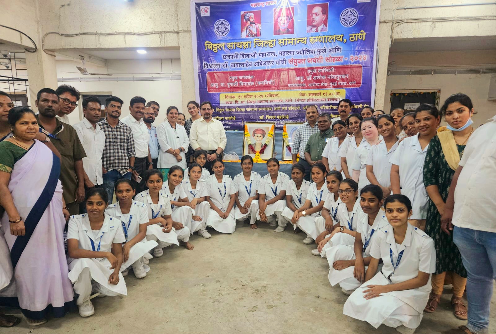 ठाणे जिल्हा सामान्य रुग्णालयात थोर समाज सुधारक महात्मा ज्योतिबा फुले यांची जयंती ११एप्रिल रोजी साजरी करण्यात आली. या वेळी महात्मा ज्योतिबा फुले यांच्या महान कार्याविषयी माहिती देऊन त्यांचे विचार हे पुढील येणाऱ्या तरुणांना मार्गदर्शक ठरतील अशी भावना व्यक्त करून त्यांना अभिवादन करण्यात आले या वेळी उपजिल्हा शल्य चिकित्सक डॉ.धीरज महांगडे, डॉ.विलास साळवे, डॉ.शिंदे तसेच मोठ्या संख्येने परिचारिका व आरोग्य महिला कर्मचारी उपस्थित होते.