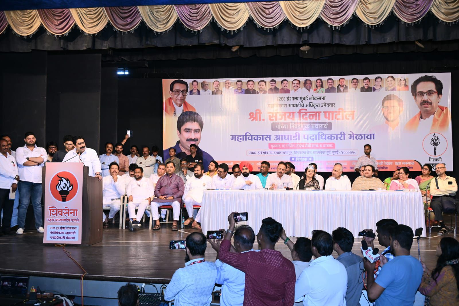 मुंबई : लोकसभा निवडणुकीच्या पार्श्वभूमीवर घाटकोपर पूर्व येथील झवेरबेन पोपटलाल सभागृहात ईशान्य मुंबई लोकसभेच्या महाविकास आघाडीतील प्रमुख पदाधिकारी यांचा मेळावा पार पडला. यावेळी कॉंग्रेसचे नेते भाई जगतापजी,शिवसेना उपनेते सचिनजी आहिर, दत्ताजी दळवी, नसीम खानजी, जेष्ठ कॉंग्रेस नेते व मा.आमदार विरेंद्र बक्षी साहेब, चरणसिंग सप्राजी, राष्ट्रवादीच्या मुंबई अध्यक्षा राखीताई जाधव, आपच्या मुंबई अध्यक्षा प्रीती मेननजी, पिपल रिपब्लिकन पक्षाचे मिलिंद सुर्वेजी यांनी उपस्थित पदाधिकारी यांना मार्गदर्शन केले. महाविकास आघाडीच्या वक्त्यांनी महागाई, जुमलेबाजी, हुकुमशाही, संविधान या प्रमुख विषयांवर भाषणातुन विरोधकांवर जोरदार हल्ला चढवला. तसेच हि सुवर्ण संधी असुन आपण सारे देशभक्त इंडिया म्हणुन लढत आहोत, मशाल हे चिन्ह घरोघरी पोहचवुन संजय दिना पाटील यांना ईशान्य मुंबईतुन दिल्लीत पाठवुया असा निर्धार यावेळी सर्वांनी केला.