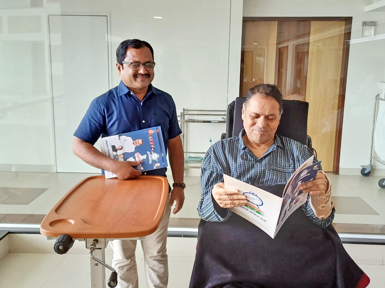 राष्ट्रवादीच्या जाहिरनामा समितीचे अध्यक्ष दिलीप वळसे पाटील जाहिरानामाच्या अंतिम मसुद्यावर शेवटचा हात फिरवताना. सोबत पक्षाचे माध्यम सल्लागार व समितीचे सदस्य संजय मिस्कीन.