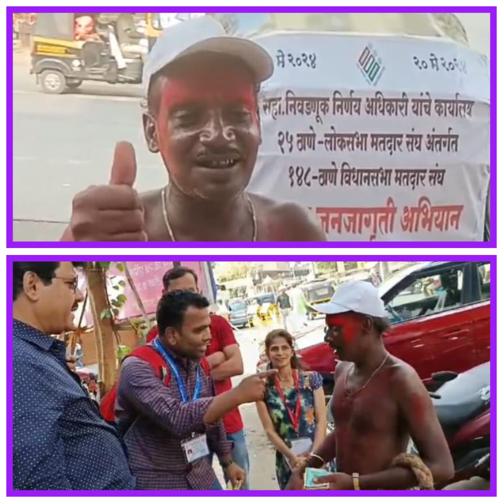 ठाणे : मतदानाची टक्केवारी वाढावी यासाठी जिल्हा प्रशासन, 25 ठाणे लोकसभा मतदारसंघ निवडणूक कार्यालय व 148 ठाणे विधानसभा निवडणूक कार्यालयाच्या वतीने विविध उपक्रम राबविण्यात येत आहेत. आता या उपक्रमामध्ये पोतराजही सहभागी झाला असून आपल्या कलेद्वारे नागरिकांमध्ये मतदान करण्याचे आवाहन करत आहे.
