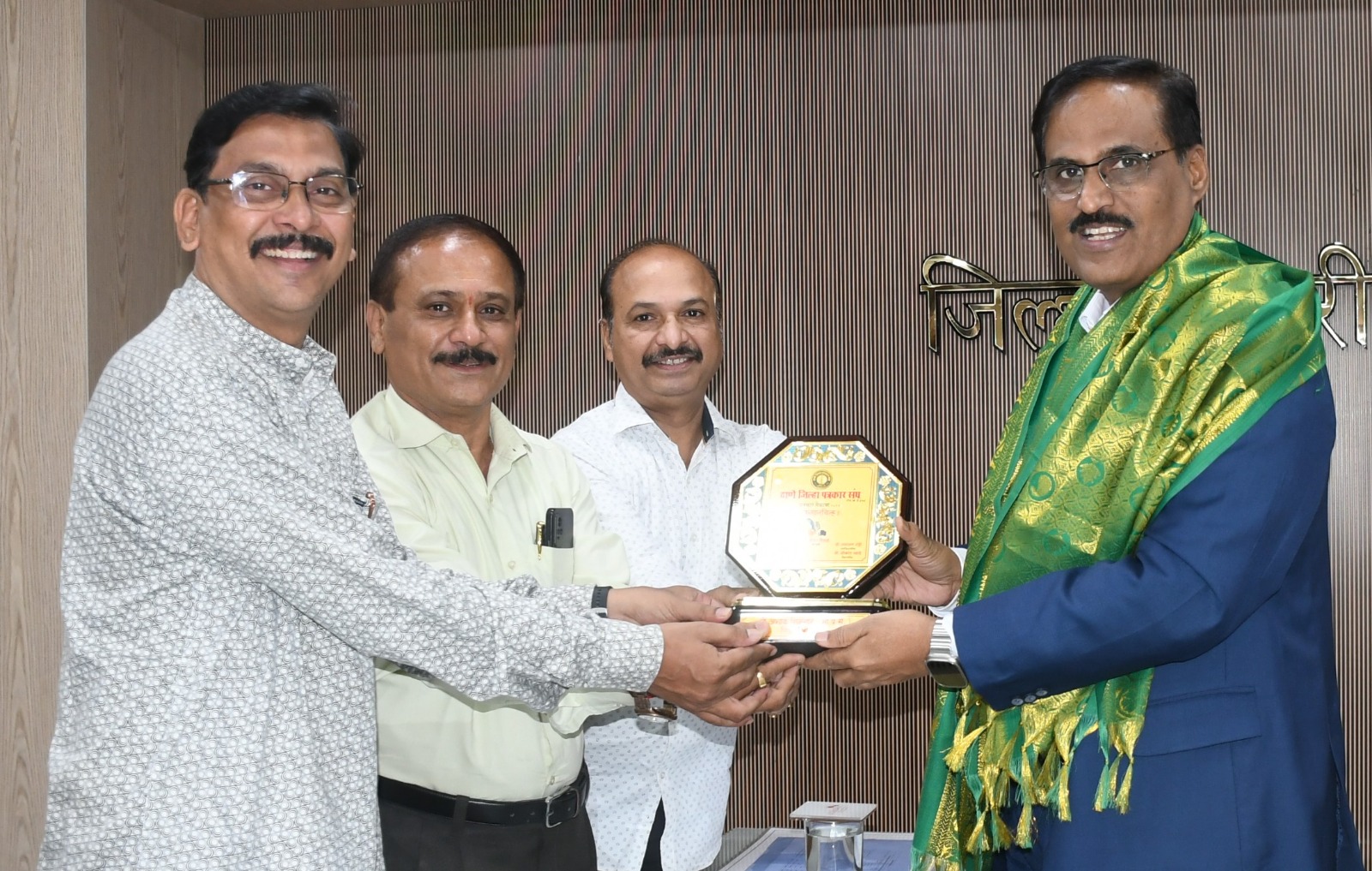 ठाणे:ठाण्याचे जिल्हाधिकारी अशोक शिनगारे यांना ठाणे जिल्हा पत्रकार संघाच्या वतीने शाल, सन्मानचिन्ह देऊन सन्मानित करण्यात आले. यावेळी ठाणे जिल्हा पत्रकार संघाचे अध्यक्ष संजय पितळे, दैनिक पुढारीचे ठाण्याचे ब्युरो चीफ दिलीप शिंदे, जनमुद्राचे संपादक डॉ. दीपक दळवी ,छायाचित्रकार किस्तु फर्नांडिस आदीं उपस्थित होते.
