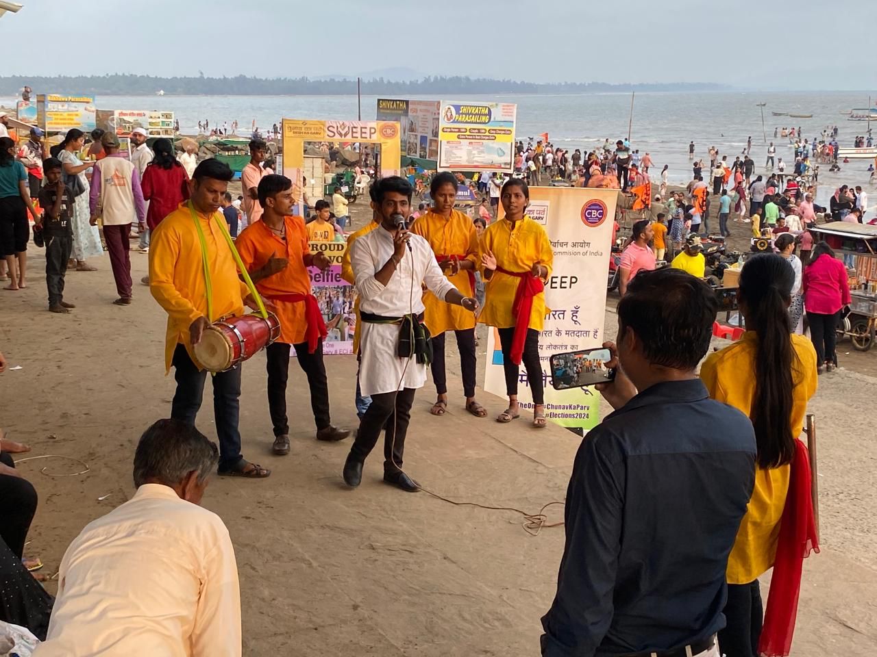 याधेळी प्रांताधिकारी मुकेश चव्हाण, नायब तहसिलदार अजित तोलकर आणि अलिबाग येथील राज्य परिवहन महामंडळाचे आगार व्यवस्थापक अजय वनारसे, केंद्रीय संचार ब्युरोचे प्रसिद्धी सहायक पी. कुमार आदी मान्यवर उपस्थित होते. अलिबाग हे कोकणातील लोकप्रिय असे पर्यटनस्थळ म्हणून ओळखले जाते. मुंबई, पुण्यासह संपूर्ण महाराष्ट्रातून याठिकाणी पर्यटक विरंगुळ्याचे क्षण घालवण्यासाठी दररोज दाखल होतात. विशेषतः शनिवार, रविवार आणि इतर सुट्टीच्या दिवशी अलिबाग परिसर हा पर्यटकांच्या गर्दीने फुललेला असतो. या बाबी विचारात घेता पर्यटकांमध्ये मतदानाबाबत जनजागृती करण्यासाठी केंद्रीय संचार ब्युरोमार्फत अलिबाग समुद्रकिनारा आणि अलिबाग बस स्टँड परिसर येथे शनिवार (४ मे) आणि रविवार (५ मे) असे दोन दिवस स्वीपसंदर्भात कार्यक्रम राबवण्यात आले. यामध्ये पथनाट्य सादरीकरण, सेल्फी स्टँड तसेच स्वीप प्रतिज्ञा यांच्यामार्फत मतदारांनी लोकशाही बळकट करण्याच्या दृष्टीकोनातून आपला मतदानाचा पवित्र हक्क बजावावा, यासाठी प्रोत्साहित करण्यात आले. मतदारांनी मतदानासाठी मिळालेल्या सुटीचा उपयोग इतर कामांसाठी न करता आवर्जून मतदान करावे, असे आवाहनही यावेळी करण्यात आले. तसेच मतदान यादीत नाव शोधणे, मतदान यादीत नाव नोंदवणे, दुरुस्ती तसेच पत्ता बदल करण्यासाठीची प्रक्रिया, यांबाबत पर्यटकांना मार्गदर्शनही करण्यात आले. मतदान हाच आपल्या ‘हातभर तक्रारींचा बोटभर उपाय’ आहे, असा संदेश यावेळी मतदारांना देण्यात आला. याप्रसंगी रायगड येथील स्वयंमसिद्ध सामाजिक विकास संस्थेने सादर केलेल्या पथनाट्यांना पर्यटक आणि मतदार यांच्याकडून चांगला प्रतिसाद मिळाला.