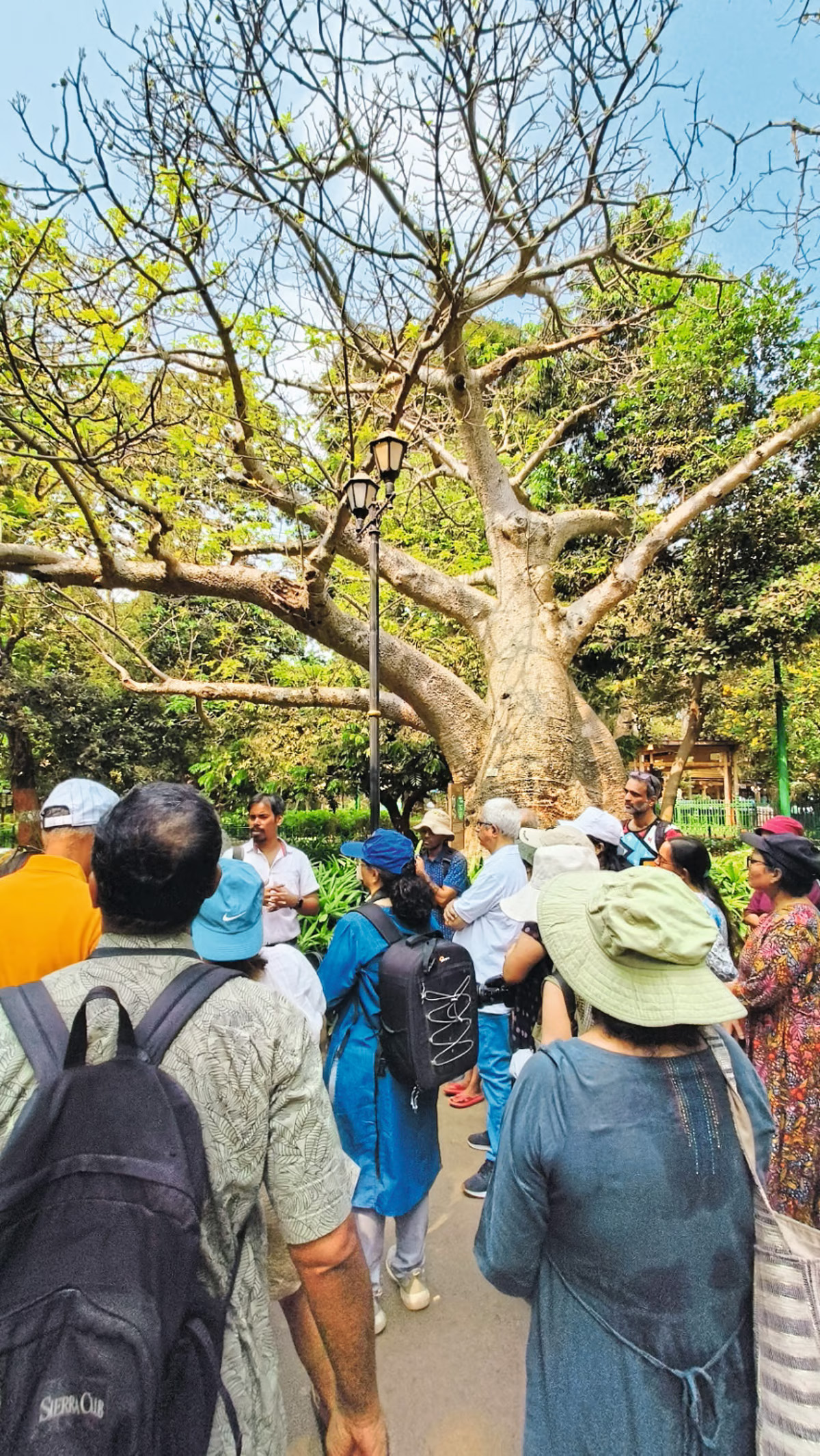 राणी बागेच्या प्रवेशद्वारावरील जुन्या बाओबाब ट्री येथून झाडांचे निरीक्षण करत बीएनएचएसच्या १७ सदस्यांनी ‘ट्री वॉक’ला सुरुवात केली. सदस्यांना मॅजेस्टिक हेवन लोटस ट्री, कॅन्डल ट्री, प्राईड ऑफ इंडिया ट्री, वीपिंग पेपरबर्क, एलिफंट ॲपल आणि अगदी चॉकलेट किंवा कोकाओ ट्रीसारखी अनेक दुर्मिळ झाडे दिसली.