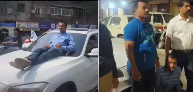 कल्याण डोंबिवली महापालिकेच्या समोर दुपारी तीन वाजताच्या सुमारास ही घटना घडली. ही बीएमडब्लू कार अल्पवयीन मुलगा चालवत होता. मात्र त्या कारच्या बोनेटवर एक तरुण पाय पसरुन मिजाशीत बसला होता. तो या कारच्या राईडचा आनंद घेत होता. भर रस्त्यात चालत्या कारच्या बोनेटवर बसून तो मजाक मस्ती करत होता. या घटनेचा व्हिडिओ सोशल मीडियावर व्हायरल झालाय. हा व्हिडिओ पाहताच बाजारपेठ पोलिसांनी या प्रकरणाची गंभीर दखल घेत या स्टंटबाज तरुणाचा शोध सुरु केला.  शुभम हा कल्याण पश्चिमेत राहतो. तर कार चालविणारा अल्पवयीन मुलगा कल्याण पूर्वेत राहतो. ही कार अल्पवयीन मुलाच्या वडिलांनी त्याला घेऊन दिली आहे. या दोघांना ताब्यात घेतले. शुभम मितालियासह अल्पवयीन कार चालकाच्या वडिलांच्या विरोधात बाजारपेठ पोलिसांनी गुन्हा दाखल केला आहे.