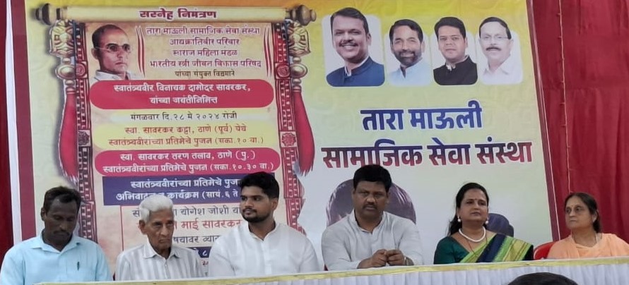 ठाणे : स्वातंत्र्यवीर विनायक दामोदर सावरकर यांना जयंतीनिमित्ताने तारा माऊली संस्थेतर्फे कोपरी येथे आयोजित केलेल्या विविध कार्यक्रमात स्वातंत्र्यवीर सावरकरांना वंदन करण्यात आले. भाजपाचे माजी ज्येष्ठ नगरसेवक भरत चव्हाण व भाजयुमोचे प्रदेश चिटणीस ओमकार चव्हाण यांच्या वतीने आयोजित केलेल्या कार्यक्रमात लेखिका-निवेदिका साधना जोशी यांचे `यशोदा ते माई सावरकर’ या विषयावरील व्याख्यानही पार पडले. त्याला नागरिकांचा उत्तम प्रतिसाद मिळाला.