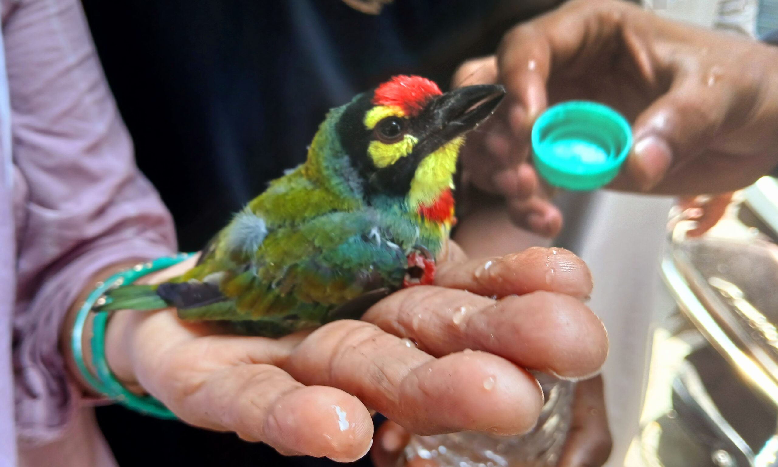 उन्हाचा तडाखा अजून कमी होण्याचे चिन्ह दिसत नाही उलट वाढतच जात आहे याचा फटका पशू पक्षांना देखील बसताना दिसत आहे ठाणे गावदेवी येथे अशाच एका कॉपर्स स्मित बारबेट पक्षाला उष्माघाताचा त्रास होऊन पक्षी रस्तावर पडला होता पक्षी मित्रांनी या पक्षाला उचलून पाणी पाजून जीवदान दिले … फोटो प्रफुल गांगुर्डे