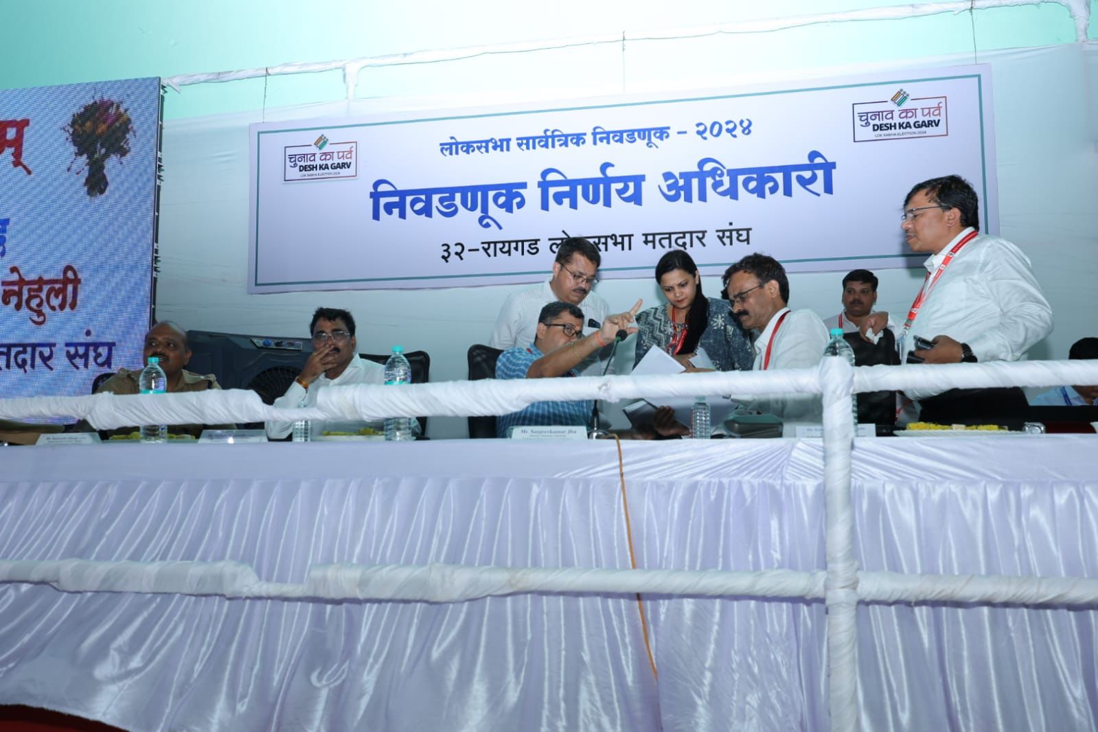 मतमोजणीची रंगीत तालीम संपन्न.आज नेहुली येथील क्रीडा संकुलात मतमोजणीची रंगीत तालीम घेण्यात आली. सर्व मतमोजणी अधिकारी आणि कर्मचारी यांनी घ्यावयाची दक्षता, कामाकाजाचा प्रोटोकॉल यांसह सर्व आवश्यक बाबींचे प्रशिक्षण आणि सराव यावेळी करण्यात आला. निवडणूक यशस्वी करण्यासाठी सर्वजण अतिशय प्रामाणिक पणे कार्यरत आहात. एकूणच जिल्हा प्रशासनाने चांगली तयारी केली असून भारत निवडणूक आयोगाच्या निर्देशप्रमाणे सर्व कार्यवाही करावी असे निवडणूक निरीक्षक संजीव कुमार झा यांनी सांगितले. तसेच सर्वाना शुभेच्छा दिल्या.
