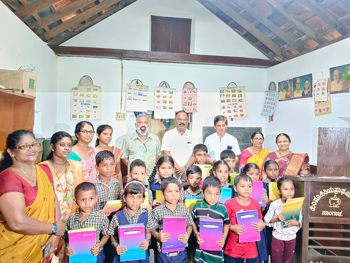 शालेय विद्यार्थ्यांना शालोपयोगी साहित्यांचे वाटप हॉटेल व्यावसायिक गोविंद शेट्टी तसेच उडिपीचे आमदार गुर्मे सुरेश शेट्टी यांच्या हस्ते करण्यात आले.