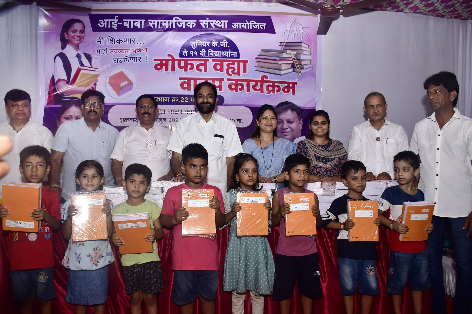 ठाणे : आई-बा सामाजिक संस्थेच्या वतीने ठाण्यातील प्रभाग क्रमांक 22 मधील एक हजारांहून अधिक विद्यार्थ्यांना वह्यांची भेट मिळाली आहे. ज्युनियर केजी ते पदवीपर्यंतचे शिक्षण घेणाऱ्या गरजू विद्यार्थ्यांना शाळा सुरू होण्याच्या अगोदर वह्या मिळाल्याने त्यांच्या चेहऱ्यावर एकच आनंद पाहायला मिळाला.संस्थेचे अध्यक्ष जयेंद्र कोळी व माजी नगरसेविका नम्रता कोळी यांच्याकडून १८ वर्षांपासून हा उपक्रम सुरू आहे.