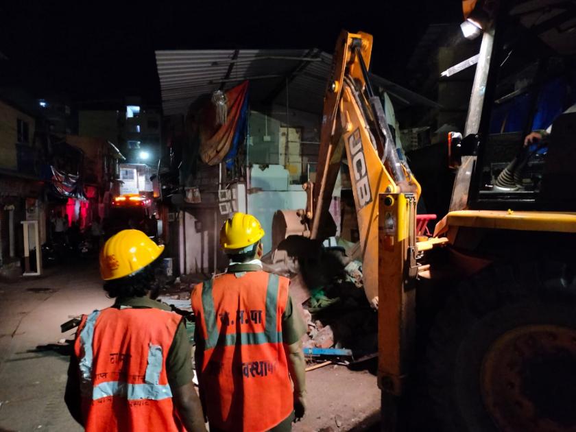 घटनेची माहिती मिळताच अग्निशमन विभाग, आपत्ती व्यवस्थापन विभागाच्या कर्मचा-यांनी घटनास्थळी धाव घेतली. रात्री १.०२ वाजताच्या सुमारास लोकमान्य पाडा नं. ३ येथील लाकडी पुलाजवळील नाल्यावर असलेल्या अमित म्हात्रे यांच्या दुकानाच्या गाळ्याची भिंत नाल्यात पडल्याची घटना घडली. सुदैवाने रात्रीच्या सुमारास गाळे बंद असल्याने जिवीतहानी टळली आहे. मात्र घटनेची माहिती मिळताच अग्निशमन दल, आपत्ती व्यवस्थापन विभागातील कर्मचारी व इतर यंत्रणांनी धाव घेत, परिस्थितीचा आढावा घेतला. परंतु ज्या गाळ्याची भिंत पडली होती. त्या गाळ्याच्या बाजूला असलेल्या इतर गाळयांची स्थिती देखील धोकादायक झाली होती. त्यामुळे घटनेचे गांभीर्य लक्षात घेऊन येथील चारही गाळे तोडण्यात आल्याची माहिती आपत्ती व्यवस्थापन विभागाने दिली. त्यानंतर नाल्यात पडलेले डेब्रीज आणि नाल्याच्या आजूबाजूला पडलेले डेब्रीज देखील काढून टाकण्यात आल्याचे सांगण्यात आले.