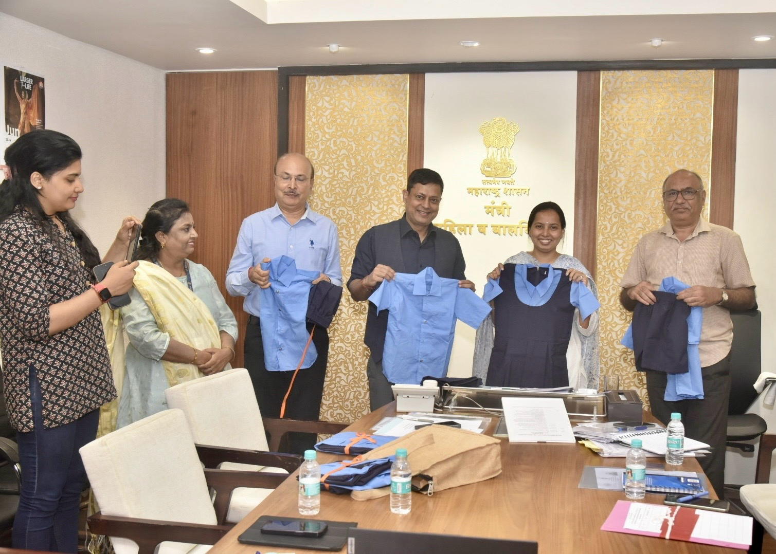 मंत्री कु.तटकरे यांच्या उपस्थितीत आज मंत्रालयात प्रातिनिधीक स्वरूपात काही शाळांमध्ये मुलांना शालेय गणवेशाचे वाटप करण्यात आले. यावेळी महिला व बालविकास विभागाचे सचिव अनुपकुमार यादव, मविमच्या व्यवस्थापकीय संचालक माया पाटोळे(ऑनलाइन) सांगली, कोल्हापूर जिल्ह्यातील काही बचतगट आणि शाळेतील विद्यार्थी शिक्षक (ऑनलाइन) उपस्थित होते.
