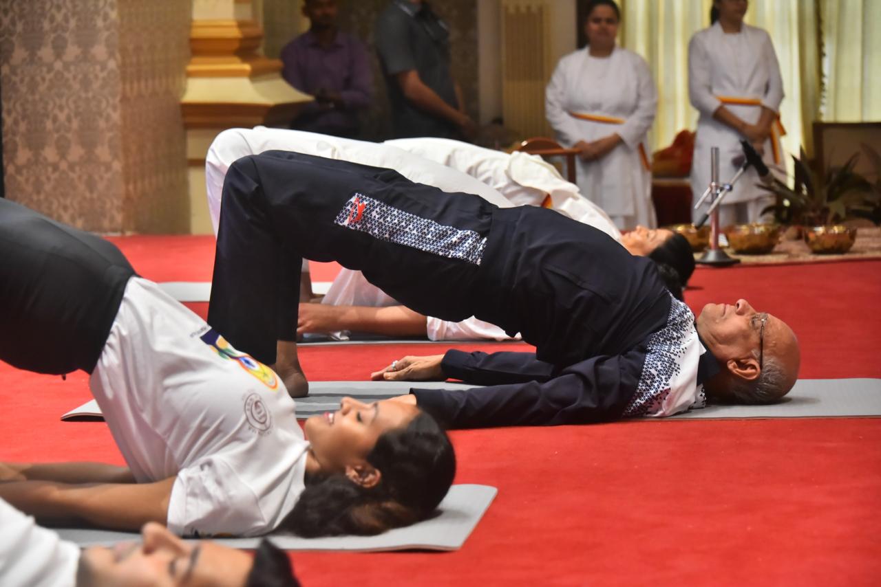 आंतरराष्ट्रीय योग दिनानिमित्त शुक्रवारी (दि. २१) राजभवन मुंबई येथील दरबार हॉल येथे राज्यपाल बैस यांच्या उपस्थितीत योगसत्राचे आयोजन करण्यात आले होते त्यावेळी ते बोलत होते. योगसत्राचे आयोजन ‘कैवल्यधाम’ व श्रीमद राजचंद्र मिशन धरमपूर योग या संस्थांतर्फे संयुक्तपणे करण्यात आले. भारतीय तटरक्षक दल, सूचना प्रसारण कार्यालय व राजभवनातील अधिकारी व कर्मचारी यांनी यावेळी राज्यपालांसह योगासने केली. भारत जगातील सर्वाधिक युवा राष्ट्र आहे. योग देशातील युवाशक्तीच्या शारीरिक, मानसिक व अध्यात्मिक सशक्तीकरणात मदत करून स्वस्थ भारताचे उद्दिष्ट गाठण्यासाठी सहायक सिद्ध होऊ शकतो असे राज्यपालांनी सांगितले. आपण स्वतः नियमित योगासने करतो व प्रत्येक दिवस आपल्याकरिता योग दिवस असतो असे राज्यपालांनी सांगितले. यावेळी श्रीमद राजचंद्र मिशन धरमपूर संस्थेचे विश्वस्त आत्मप्रीत रक्षित, रतन लुणावत व अल्पा गांधी तसेच कैवल्यधाम योग संस्थेचे रवी दीक्षित प्रामुख्याने उपस्थित होते. यावेळी रवी दीक्षित व देवकी देसाई यांनी योगसत्राचे संचलन केले.