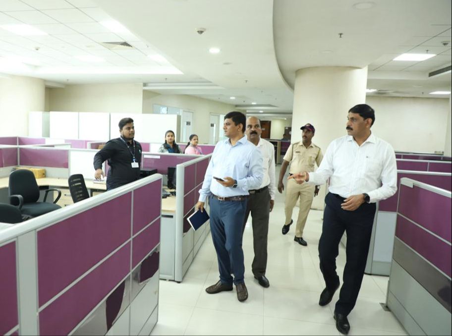 नवी मुंबई महानगरपालिकेचा कारभार लोकाभिमुख व गतीमान होण्यासोबतच कार्यालयीन शिस्तीवरही नमुंमपा आयुकत् डॉ. कैलास शिंदे यांचे बारकाईने लक्ष असून आज त्यांनी कोणतीही पूर्वकल्पना न देता मुख्यालयातील सर्व विभागांना अचानक भेट देत पाहणी केली. याप्रसंगी त्यांच्या समवेत प्रशासन विभागाचे उप आयुक्त् शरद पवार उपस्थि होते. यावेळी आयुक्तांनी अधिकारी, कर्मचारी यांची कार्यालयातील उपस्थिती वेळेवर असणे अनिवार्य असल्याचे नमूद करीत प्रत्येक विभागप्रमुखाने त्यांच्या अधिनस्त कर्मचारी वेळेवर येत असल्याची खात्री करून घ्यावी असे स्पष्ट निर्देश दिले. कार्यालयातील नस्ती व कागदपत्रे शासकीय नियमावलीनुसार कपाटांमध्ये ठेवलेले असावेत याची विशेष दक्षता घेण्यात यावी व विभागप्रमुखांनी त्यांच्या विभागात त्या पध्दतीने अंमलबजावणी होत असल्याची खातरजमा करुन घ्यावी असेही आयुक्तांनी निर्देश दिले. मुख्यालयातील प्रत्येक विभागात नागरिक मोठया संख्येने भेटी देत असल्याने सौंदर्याला बाधा पोहचणार नाही अशा प्रकारे स्वच्छ सर्वेक्षण व माझी वसुंधरा अभियानाचे संदेश प्रसिध्दी करण्यात यावेत असेही आयुक्तांनी सूचित केले.यावेळी स्वच्छतागृहांचीही तपासणी करुन आणखी सुधारणा करण्याच्या सूचना करतानाच वॉटर कुलरची अंतर्गत स्वच्छता तसेच त्याच्या आजुबाजूच्या परिसराची स्वच्छता नियमीतपणे होत राहील याकडे काटेकोर लक्ष देण्याचे निेर्देश देण्यात आले.