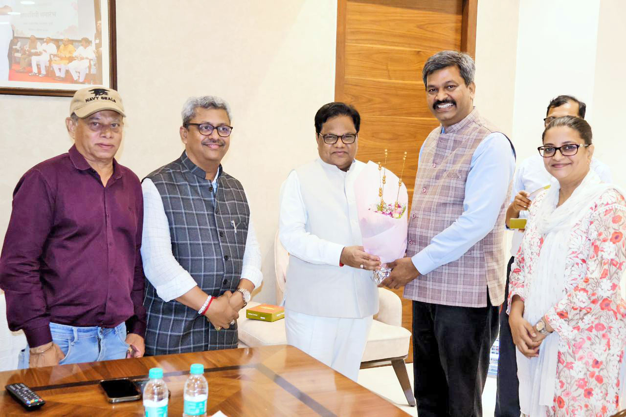 मुंबई मराठी पत्रकार संघाच्या इतिहासात पहिल्यांदाच सर्वच्या सर्व १४ जागा जिंकणाऱ्या परिवर्तन पॅनेलचे अध्यक्ष संदीप चव्हाण यांचा सत्कार करताना आरोग्यमंत्री तानाजी सावंत. सोबत पत्रकार संघाच्या उपाध्यक्षा स्वाती घोसाळकर, उपाध्यक्ष राजेंद्र हुंजे आणि ज्येष्ठ छायाचित्रकार प्रदीप कोचरेकर.