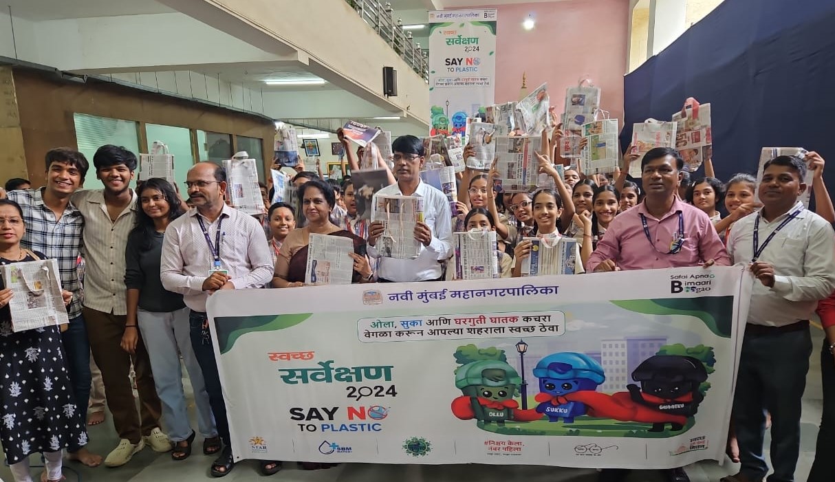 या अनुषंगाने ‘स्वच्छ सर्वेक्षण 2024’ अंतर्गत सद्यस्थितीत सुरू असलेल्या ‘सफाई अपनाओ, बिमारी भगाओ’ या मोहिमेमध्ये नमुंमपा आयुक्त डॉ. कैलास शिंदे साहेब यांच्या निर्देशानुसार शालेय विद्यार्थ्यांपर्यंत पोहोचून त्यांना स्वच्छतेसोबत प्लास्टिक प्रतिबंधाचे महत्व पटवून देण्यात येत आहे.