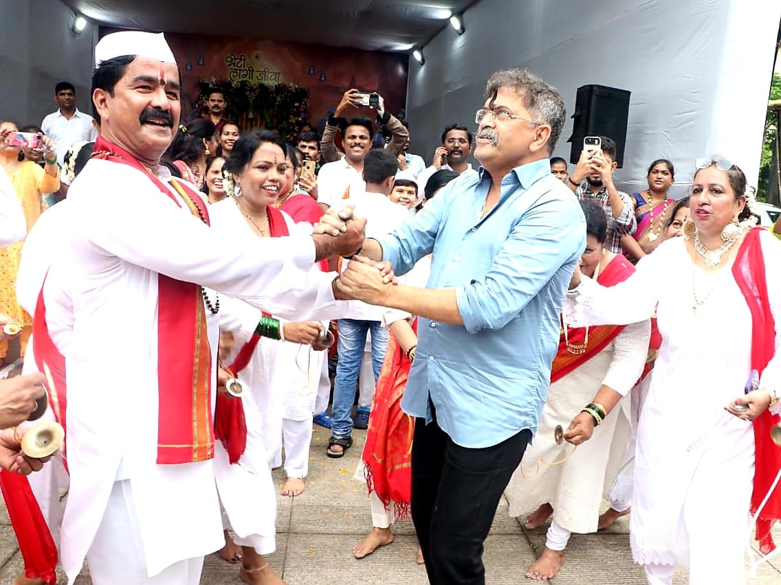 ठाणे : कळवा येथील राष्ट्रवादी काँग्रेस -शरदचंद्र पवार पक्षाच्या कार्यालयात आज विठू भक्तांची मांदियाळी आली. चंद्रभागा नदीत अभिषेक करून आणलेल्या विठ्ठल-रखुमाईच्या मूर्तींचे दर्शन घेण्यासाठी सबंध कळवेकरांची रिघ लागली होती. या वेळी काढलेल्या दिंडीत राष्ट्रवादी काँग्रेसचे राष्ट्रीय सरचिटणीस डॉ.जितेंद्र आव्हाड हे भक्तिरसात तल्लीन झाल्याचे चित्र दिसून आले. वारकऱ्यांच्या सोबत त्यांनीही टाळमृदंगाच्या गजरात चक्क फुगडीचा फेरही धरला.