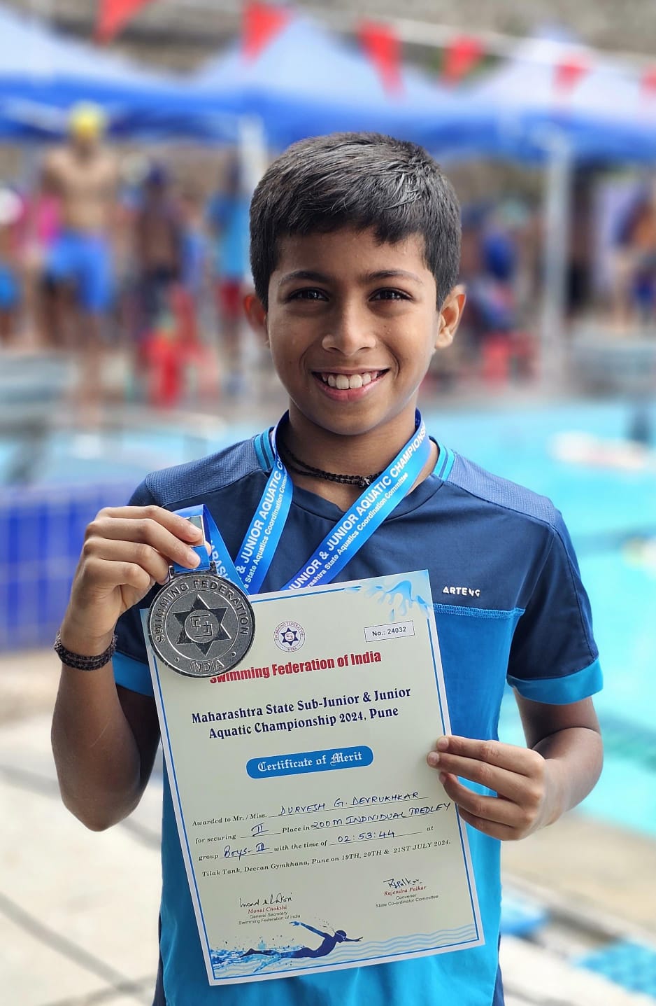 मुंबई : प्रबोधनकार क्रीडा संकुलातील जलतरणपटू दुर्वेश देवरुखकर याने नुकत्याच पुणे येथील टिळक टॅंक येथे राज्यस्तरीय जलतरण स्पर्धेमध्ये ग्रुप ३ मध्ये सहभागी होऊन तीन रौप्य व एक कांस्य पदके पटकावले. त्याची पहिल्यांदाच राष्ट्रीय स्पर्धेत निवड झाली असून तेही तब्बल तीन प्रकारात (१०० मी बटरफ्लाय, १०० मी ब्रेस्टस्टोक व २०० मी इंडिव्हिज्युअल मीडलि ) दुर्वेश हा प्रबोधनकार क्रीडा संकुलाचे माजी महापौर रमेश प्रभू यांच्या आशीर्वादाने तसेच संकुलाचे अध्यक्ष अरविंद प्रभू व सचिव डॉ. मोहन राणे यांच्या मार्गदर्शनाने वयाच्या चार वर्षापासून जलतरणाचा सराव करत आहे. त्याने आतापर्यंत बऱ्याच जिल्हा व राज्यस्तरीय स्पर्धांमध्ये नवीन विक्रम करून वैयक्तिक विजेतेपद पटकावले आहे. दुर्वेशी मोठी बहीण सिया हिला सुद्धा या स्पर्धेत ८०० मी फ्री स्टाईल मध्ये कांस्य पदक मिळविले आहे तसेच ती स्वतः या आधी चार वेळा राष्ट्रीय स्पर्धा खेळून पदक विजेती ठरली आहे. नील जेटली, सावली पाटील व अर्चित परब या संकुलाच्या खेळाडूंनी सुद्धा रिले शर्यतीत सुवर्ण पदक पटकाविले आहे. सर्व खेळाडूंच्या यशापाठी संकुलाचे प्रमुख प्रशिक्षक सहदेव नेवाळकर यांचा देखील मोलाचा वाटा आहे. दुर्वेश आता ६ ते ११ ऑगस्ट रोजी भुवनेश्वर ओडीसा येथे होणाऱ्या राष्ट्रीय जलतरण स्पर्धेत पोहण्याच्या तीन प्रकारात सहभागी होणार आहे. हा पार्ले टिळक विद्यालय इंग्लिश मीडियम मध्ये इयत्ता सहावीत शिकत आहे. रोज सकाळी दोन आणि सायंकाळी तीन असा एकूण पाच तासांचा त्याचा रोजचा सराव करत असतो व त्याचबरोबर तो त्याचा अभ्यास देखील खूप चांगल्या प्रकारे सांभाळतो. दुर्वेश ची आई इशा देवरुखकर आंतरराष्ट्रीय मल्लखांब पंच आहे आणि वडील गणेश देवरुखकर हे मल्लखांबातील द्रोणाचार्य पुरस्कार विजेते आहेत. या दोघांच्या अनुभवाचा देखील दोन्ही बहिण भावाला वेळोवेळी मार्गदर्शन मिळत असते. सर्वत्र त्याच्यावर अभिनंदनाचा वर्षाव होत आहे.