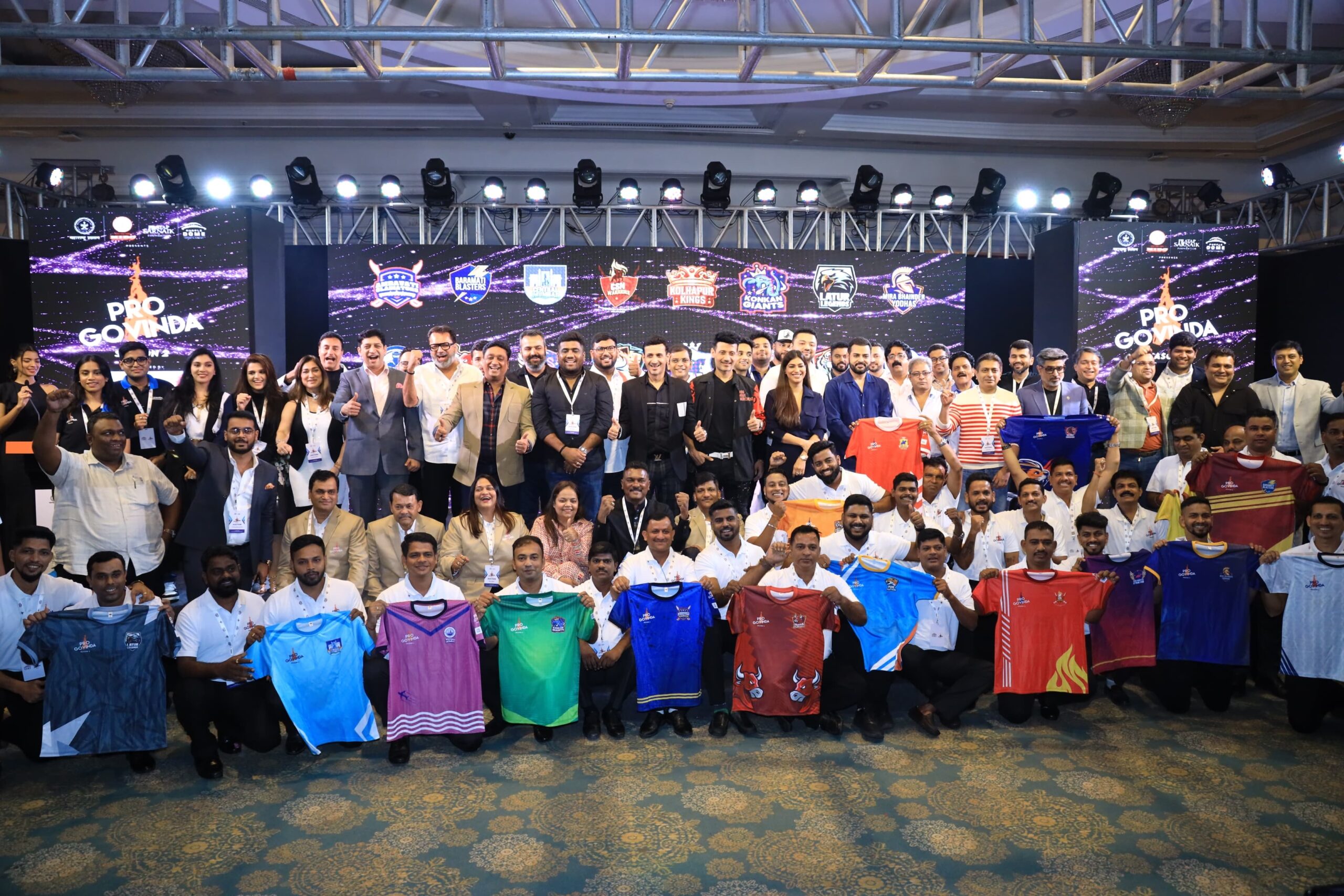 प्रो गोविंदा सीझन-२ मध्ये अंतिम फेरीत निवड झालेल्या १६ संघांचे नामकरण व जर्सी अनावरण सोहळा ताज लँड्स एंड हॉटेल, बांद्रा मुंबई येथे पार पडला. यावेळी आमदार प्रताप सरनाईक, प्रो गोविंदा लीगचे अध्यक्ष पुर्वेश सरनाईक, डोम सिनेयुग कंपनीचे संचलाक अध्यक्ष मोहम्मद मोरानी, डोम एन्टरटेन्मेंटचे व्यवस्थापकीय संचालक मजहर नाडियादवाला आदी मान्यवर उपस्थित होते. गोविंदा या खेळाला राष्ट्रीय दर्जा प्राप्त व्हावा त्याचप्रमाणे या खेळाचे व्यावसायिकीकरण व्हावे यासाठी प्रो गोविंदा स्पर्धेचे आयोजन करण्यात येते. ज्या प्रमाणे क्रिकेट, कबड्डी खेळाला व्यासपीठ मिळून हा खेळ मोठा झाला. त्याचप्रमाणे गोविंदा या मराठमोळा खेळाला मोठं करण्यासाठी व त्याला हक्काचे व्यासपीठ मिळवून देण्यासाठी मागील दोन वर्षांपासून आमदार प्रताप सरनाईक यांच्या पुढाकाराने व प्रो गोविंदा लीगचे अध्यक्ष पुर्वेश नेतृत्वात प्रो गोविंदा स्पर्धेचे आयोजन करण्यात येत आहे. यंदा प्रो गोविंदा सीझन २ मोठ्या जल्लोषात १८ ऑगस्ट, २०२४ रोजी वरळी येथील NSCI डोम येथे होणार आहे. प्रो गोविंदा सीझन २ साठी १६ संघांची निवड करण्यात आली. या संघांचे नामकरण, अलॅाटमेंट प्रक्रिया आज पूर्ण करण्यात आली तसेच १६ संघांच्या जर्सीचे अनावरणही करण्यात आले. आयपीएल प्रमाणे प्रत्येक संघ एक एक मालकाने निवडला असून पुढील सीझनपर्यंत हे संघ या मालकांकडे राहणार आहेत.