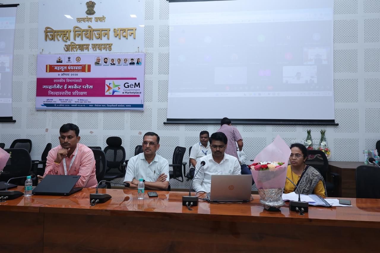 रायगड : रायगड जिल्ह्यातील सर्व शासकीय विभाग आणि कार्यालयांनी वस्तू आणि सेवा खरेदीसाठी गव्हर्मेंट ई-मार्केटप्लेस (GeM) या पोर्टलचा उपयोग करावा. या माध्यमातून सुलभ आणि पारदर्शी व्यवहार होतील आणि सर्व कामांना गती मिळेल, असा विश्वास जिल्हाधिकारी किशन जावळे यांनी व्यक्त केला.