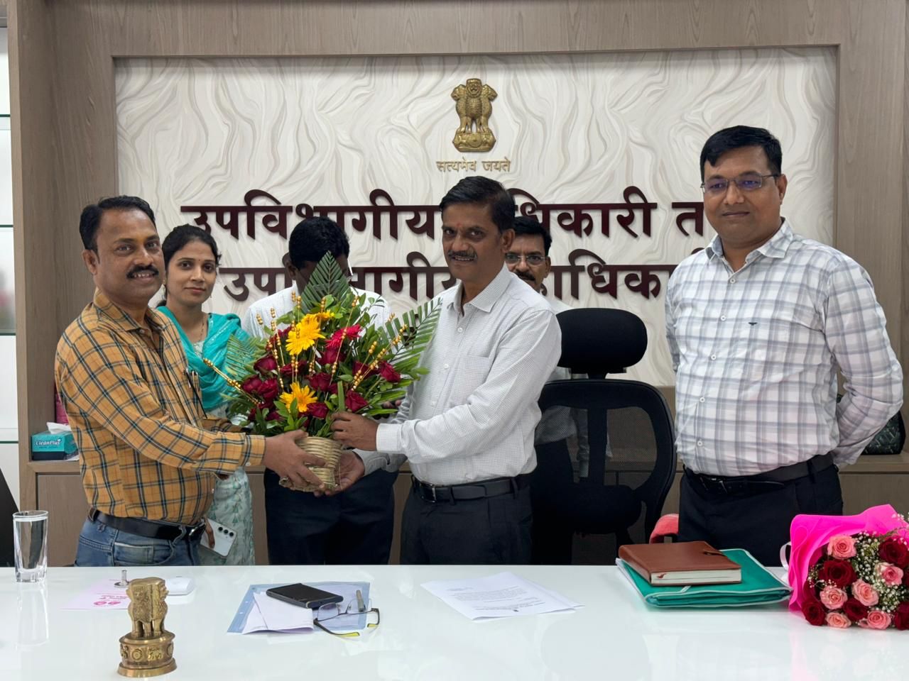 कर्जत पोलीस उपविभागीय अधिकारी डी.डी. टिळे, कर्जत उपविभागीय अधिकारी कार्यालय नायब तहसीलदार प्रसाद पाटील, कर्जत तहसील कार्यालय निवासी नायब तहसीलदार सचिन राऊत, खालापूर तहसील कार्यालय निवासी नायब तहसीलदार सुधाकर राठोड, कर्जत तहसील कार्यालय महसूल नायब तहसीलदार सोपान बाचकर, खालापूर तहसील कार्यालय नायब तहसीलदार मिलिंद तिऱ्हेकर, कर्जत पोलीस ठाणे, पोलीस निरीक्षक सुरेंद्र गरड, नेरळ पोलीस ठाणे, सहायक पोलीस निरीक्षक शिवाजी ढवळे, माथेरान पोलीस ठाणे, सहायक पोलीस निरीक्षक अनिल सोनोने, मंडळ अधिकारी माणिक सानप, संतोष जांभळे, वैशाली पाटील, बाबासो शेटे, तलाठी दत्ता ठोकळ, अभिजित हिवरकर, शिपाई बाळू आढाव, नथू गायकवाड, उघडा, मनोहर वाघ, राहुल गायकवाड यांनीही पुष्पगुच्छ देवून प्रशासकीय भवनामध्ये उपविभागीय अधिकारी कार्यालयात संकपाळ यांचे स्वागत केले.