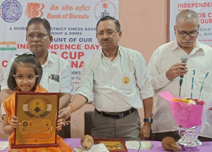 मुंबई : आयडियल स्पोर्ट्स अकॅडमीतर्फे स्वातंत्र्य दिनानिमित्त आयोजित बीओबी कप विविध ८ वयोगटातील बुध्दिबळ स्पर्धेमध्ये अनाहिता महाजनने ६ वर्षाखालील गटात सर्व सामने जिंकले आणि समाजरत्न स्व. सुरेश आचरेकर स्मृती चषक पटकाविला. बँक ऑफ बडोदा, आरएमएमएस व मुंबई शहर जिल्हा बुध्दिबळ संघटना सहकार्यीत ६ ते १४ वयोगटातील बुध्दिबळ स्पर्धेमधील सर्व साखळी ५ सामने जिंकणाऱ्या सर्वात लहान सबज्युनियर बुध्दिबळपटूचा विशेष पुरस्कार अनाहिताने जिंकला. तिला क्रीडा संघटक नामदेव घाग, क्रीडापटू चंद्रकांत करंगुटकर, शिवछत्रपती पुरस्कार विजेते लीलाधर चव्हाण आदी मंडळींच्या प्रमुख उपस्थितीत गौरविण्यात आले.