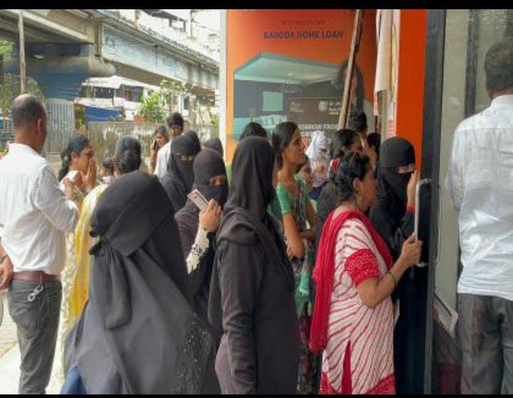 भिवंडी- मुख्यमंत्री लाडकी बहीण योजना या अंतर्गत लाभार्थी असलेल्या लाडक्या बहिणीच्या बँक खात्यांमध्ये शासनाकडून दोन महिन्यांचे एकूण तीन हजार रुपये बँक खात्यांमध्ये जमा होण्यास सुरुवात झालेली आहे. भिवंडी शहरातील अजूनही बहुसंख्य महिलांचे मोबाईल नंबर अपडेट नसल्याने महिलांनी आपल्या बँक खात्यात पैसे जमा झालेत की नाही हे पाहण्यासाठी, कागतपत्रे जमा करण्यासाठी तर काहींनी बँक खात्यातून पैसे काढण्यासाठी बँकेबाहेर तसेच बँकेबाहेर ठेवण्यात आलेल्या पासबुक प्रिंटिंग मशीन समोर प्रचंड गर्दी केली होती.