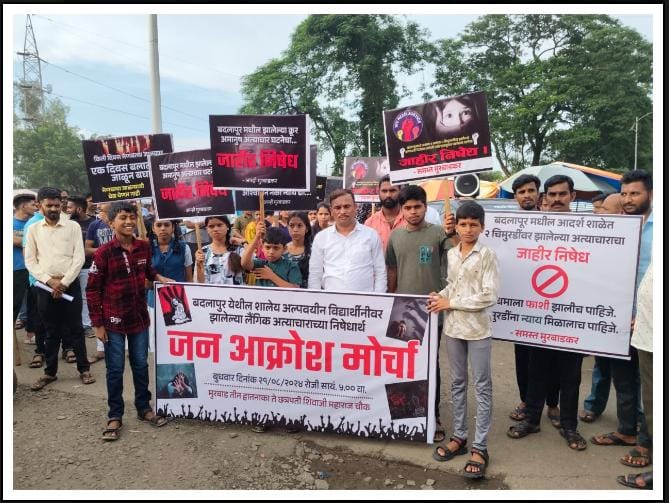 या आंदोलनाप्रसंगी ‘धर्मराज्य पक्षा’चे अध्यक्ष राजन राजे यांच्या नेतृत्त्वाखाली, पक्षाचे उपाध्यक्ष नितीन देशपांडे, सहसचिव नरेंद्र पंडित, ठाणे लोकसभा उपाध्यक्ष महेशसिंग ठाकूर, सचिन शेट्टी, ठाणे लोकसभा सचिव विनोद मोरे, ठाणे शहर अध्यक्ष जगन्नाथ सलगर, ‘धर्मराज्य कामगार-कर्मचारी महासंघा’चे सचिव समीर चव्हाण, प्रसिद्धीप्रमुख संजय दळवी यांच्यासह, अविनाश सावंत, अमित लिबे, निलेश सावंत, संभाजी गिरी आणि कामगार सदस्य मोठ्यासंख्येने उपस्थित होते.यावेळी प्रसिद्धीमाध्यमांशी बोलताना राजन राजे म्हणाले, “प्रश्न केवळ बलात्काराचा नसून, पोलिसांच्या व राजकारण्यांच्या बेकायदेशीर, बेईमान आणि नीतिशून्य व्यवहारातूनच बदलापूरकर जनतेच्या संतापाचा विस्फोट झालाय. पोलीस प्रशासन व राजकारणी यांच्यावरील विश्वास पूर्णपणे उडाल्यामुळेच, बदलापूरचे आंदोलन हिंसक बनून, ते आवरणं कठीण झालं होतं. म्हणूनच, पोलीस आणि सत्ताधाऱ्यांनी, सर्वप्रथम आपलं वर्तन, कार्यपद्धती सुधारावी आणि मगच, आंदोलकांवर कारवाई करावी. बदलापूरचं आंदोलन हे, एकूण परिस्थिती पाहता, उत्स्फूर्त व अत्यंत स्वाभाविक होतं, त्यामुळेच आंदोलकांवरील कारवाई तत्काळ मागे घ्या; अन्यथा, राजीनामे देऊन तोंड काळे करा!” असा जोरदार घणाघात राजन राजे यांनी पत्रकारांशी बोलताना केला. दरम्यान, बालिकांवरील लैंगिक अत्याचाराची घटना उघडकीस आल्यानंतर, शाळेतील समस्त पालकवर्ग आणि बदलापूरकर नागरिकांनी उत्स्फूर्तपणे रस्त्यावर उतरुन तीव्र निषेध-आंदोलन करीत, तब्बल ११ तास लोकल ट्रेनची वाहतूक रोखून धरली होती. प्रसिद्धीमाध्यमांद्वारे प्रकाशित झालेल्या बातम्यांनुसार, दोन्ही पिडीत बालिकांवरील लैंगिक अत्याचाराची घटना उघड झाल्यानंतर, सुरुवातीला शाळा प्रशासन आणि बदलापूर पोलिसांनी, संगनमताने हे प्रकरण दाबण्याचा प्रयत्न केला. तसेच, पीडित बालिकांचे पालक, पोलीस ठाण्यात तक्रार करण्यासाठी गेले असता, पोलीस ठाण्याच्या वरिष्ठ पोलीस निरीक्षिका शुभदा शितोळे या महिला अधिकारीकडून, त्यांना तब्बल १२ तास ताटकळत ठेवण्यात आल्याचे समोर आले आहे. या संतापजनक प्रकारानंतर जनप्रक्षोभ उसळल्यावर, पोलीस प्रशासनाने कारवाईला सुरुवात करुन, तपासकार्यात चालढकल केल्याच्या सबबीखाली शुभदा शितोळे यांची, ठाणे नियंत्रण कक्षात तडकाफडकी बदली केल्याचे निदर्शनास आलेले आहे. ही बाब अत्यंत निंदनीय असून, संबंधित महिला पोलीस अधिकारी यांची बदली करणे म्हणजे, त्यांच्यावर कायदेशीर कारवाई केलेली नसून, ज्या शुभदा शितोळे यांनी, शाळा प्रशासन आणि नराधम आरोपी यांना, पाठीशी घालण्याचा प्रयत्न केला आहे, त्यांच्यावर कठोर-कायदेशीर कारवाई करणे हे क्रमप्राप्त ठरते. दुर्दैवाची बाब 