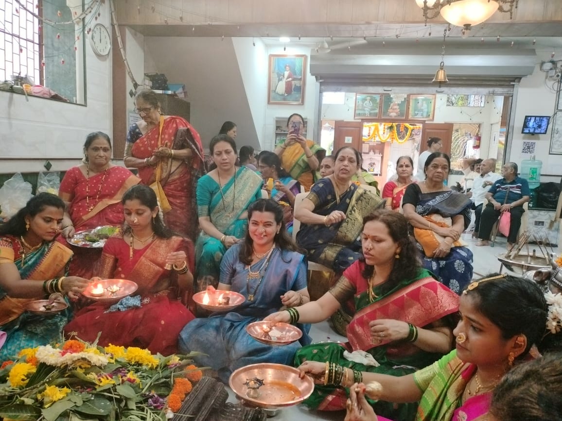 मुंबई : गिरगावातील मुगभाट क्रॉस लेन इथल्या विठ्ठल मंदिरत दक्षिण मुंबई दैवज्ञ समाज महिला मंडळच्या वतीने सामूहिक मंगळागौरीचे आयोजन करण्यात आले होते. ह्या प्रसंगी सकाळी शुभमुहूर्तावर करण्यात आलेल्या मंगळागौरी पूजनाचा मान नुकत्याच लग्न बंधनात बांधल्या गेलेल्या नऊ वधूंना देण्यात आला होता. त्यामुळे नववधूंच्या चेहऱ्यावरचा आनंद द्विगुणित व गगनात मावेनासा झाला होता.मंदिराचे सभागृह सकाळपासूनच महिलांनी खचाखच भरून गेले होते.ह्या वेळेस ५०० हून अधिक महिलांनी हजेरी लावत ह्या सामूहिक मंगळागौरी कार्यक्रमाचा भरघोस आनंद लुटला.