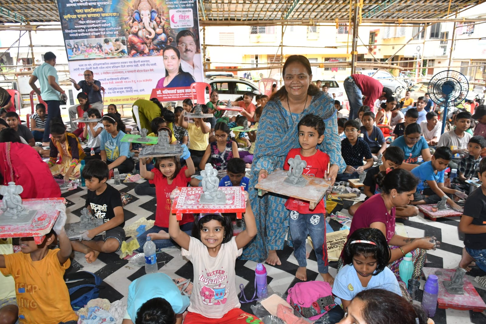 ठाणे : विहंग चॅरिटेबल ट्रस्ट अध्यक्षा, माजी नगरसेविका परिअधिषा प्रताप सरनाईक यांच्या माध्यमातून दरवर्षीप्रमाणे शिवाईनगर येथे ६ वर्षावरील बालमित्रांसाठी गणपती बनविण्याचे प्रशिक्षण देण्यात आले. १०० हून अधिक विद्यार्थ्यांनी या प्रशिक्षणाला उत्स्फुर्तपणे हजेरी लावली. या प्रशिक्षण कार्यशाळेला विद्यार्थ्यांची लगबग व प्रचंड उत्साह होता.
