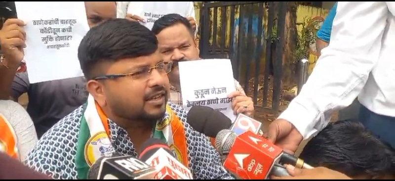 गेल्या काही दिवसांपासून घोडबंदर मार्गावरील वाहतूक कोंडीत प्रचंड वाढ झाली आहे. आधीच सुरू असलेले मेट्रो रेल्वेचे काम आणि पोलिसांचे फसलेले नियोजन यामुळेच ही वाहतूक कोंडी होत असल्याचा आरोप करीत हे आंदोलन करण्यात आले. यावेळेस आंदोलकांनी वाहतूक पोलीस कार्यालयाबाहेर ठिय्या आंदोलन करून जोरदार घोषणाबाजी केली. याप्रसंगी अभिजीत पवार यांनी, डिवायडर बाबाच्या सांगण्यावरून वाहतुकीचे नियोजन केले जात आहे. हा बाबा काय मोठा आर्किटेक्ट आहे का ? शहरातील रस्त्यांची कामे नागरिकांच्या हितासाठी नाहीत तर ठेकेदाराच्या फायद्यासाठी होत आहेत. निकृष्ट दर्जाच्या कामांमुळे खड्डे पडत आहेत. परिणामी वाहतूक कोंडी वाढत असून रूग्ण वाहतूक कोंडीत अडकून दगावतात ; विद्यार्थ्यांचे शैक्षणिक तर चाकरमान्यांचे आर्थिक नुकसान होत आहे. यास सरकारच जबाबदार आहे, अशी टीका अभिजीत पवार यांनी केली. तर उमेश अग्रवाल म्हणाले, ठाणे शहरातील वाहतुकीचा पुरत्या बोर्या वाजला आहे. सुमीत नावाच्या कोणा बाबाच्या सांगण्यावरून शहरातील अनेक डिव्हायडर टाकण्यात आले होते. त्यामुळेच वाहतूक कोंडीत ठाणेकर गुदमरत होते. आता रस्त्यातील खड्डे आणि पोलिसांचे नियोजन फसत असल्याने ही कोंडी होत आहे. जर पोलिसांनी वेळीच योग्य नियोजन केले नाही तर आम्ही या प्रकरणात न्यायालयात दाद मागू, असा इशाराही उमेश अग्रवाल यांनी दिला.