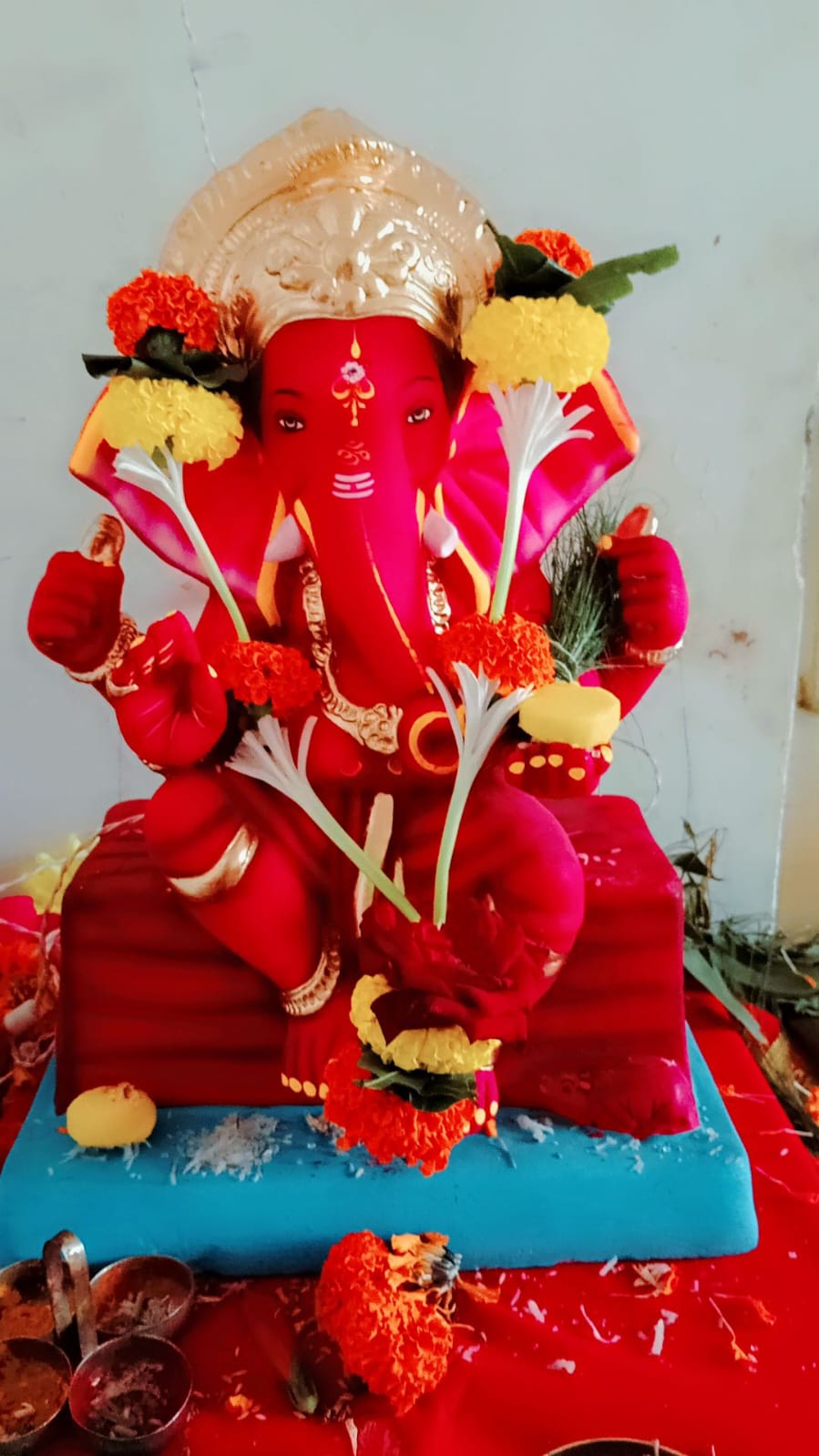 गजानन नामदेव लाखे नाशिक, यांच्या घरातील सुबक शाडू मातीची श्री. गणपती बाप्पाची मुर्ती.