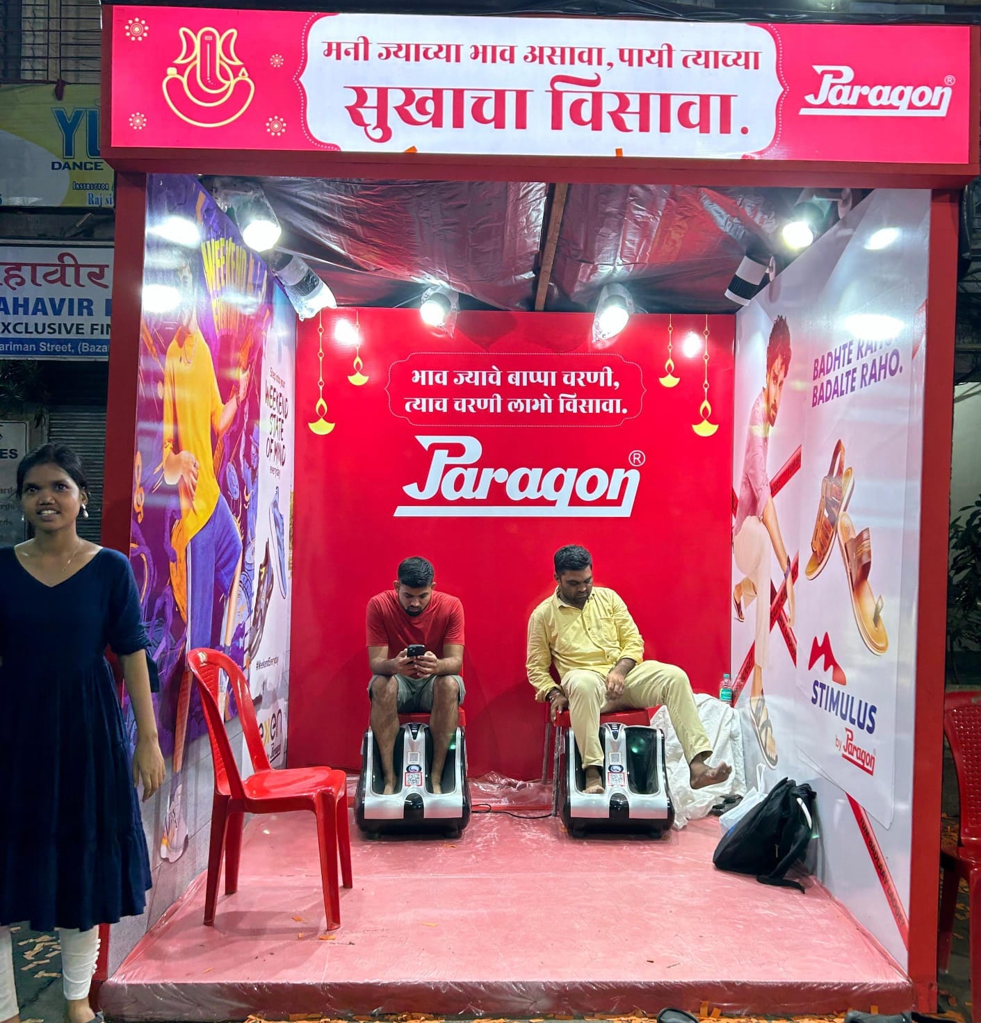 पॅरेगॉन सारख्या नामांकित कंपनीने गणेश भक्तांसाठी रांगेत विश्रांती धाम बनवलं असून चालून थकलेल्या गणेश भक्तांना फूट मसाज केंद्र मोफत सेवा पॅरेगॉन ने दिली आहे. मुंबईमध्ये मुंबईचा राजा, खेतवाडीचा राजा, फोर्टचा चिंतामणी, लाल मैदान- परेल, सह्याद्री क्रीडा मंडळ-चेंबूर या ठिकाणी ही सेवा मोफत देण्यात आली आहे.