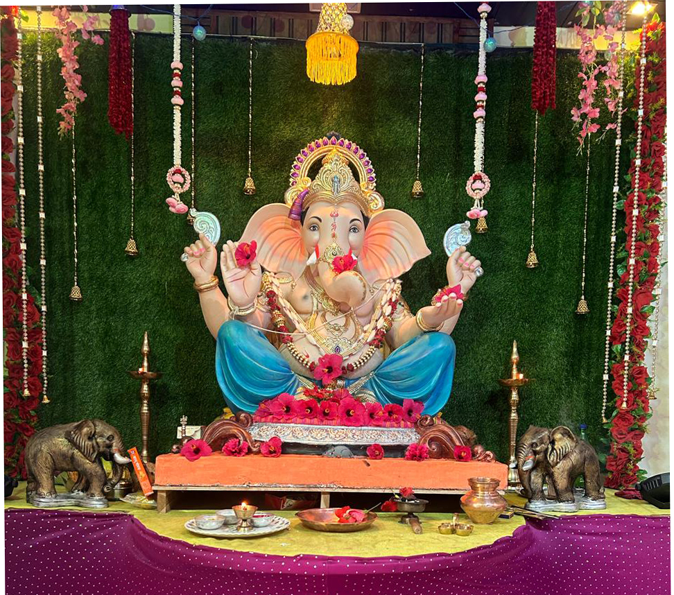 पाग(चिपळूण) येथील गोरक्षनाथ तांबडे, पाडुंरंग तांबडे व रुपेश तांबडे यांच्या घरी स्थानापन्न झालेली श्री गणरायाची सुबक मूर्ती.