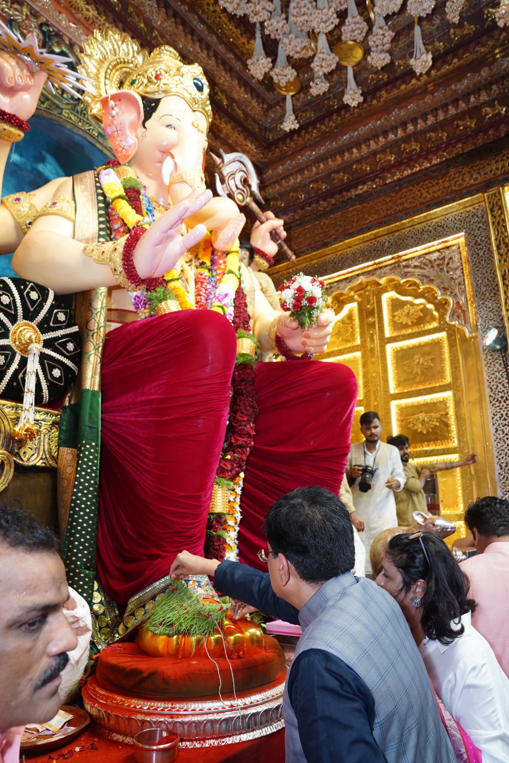 केंद्रीय वाणिज्य मंत्री खासदार पियूष गोयल यांनी लालबागचा राजाच्या दरबारात नतमस्तक होऊन सर्व देशवासीयांसाठी सुख शांती, समृद्धीची आणि स्वस्थ आरोग्याची कामना केली. यावेळी गोयल यांच्या धर्मपत्नी सीमा गोयल आणि सुपुत्र ध्रुव गोयल सोबत उपस्थित होते.