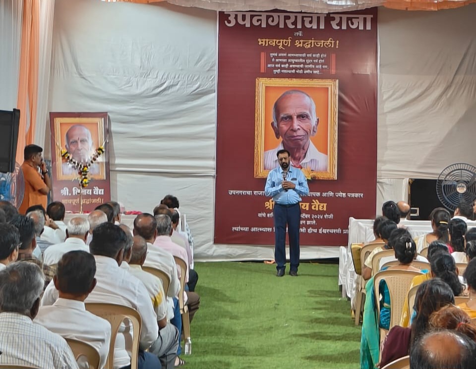 मुंबई : जय महाराष्ट्र नगर येथील सामाजिक, शैक्षणिक संस्थांची मुहूर्तमेढ रोवणारे आणि गेली ४२ वर्षे अखंडपणे, अव्याहतपणे जय महाराष्ट्र नगर वसंत व्याख्यानमाला सुरु ठेवणारे समाजसेवेचे मानबिंदू, ज्येष्ठ राजकीय विश्लेषक, ज्येष्ठ पत्रकार विजय वैद्य हे आज शरीराने जरी आपल्यात नसले तरी सूर्य चंद्र असेस्तोवर त्यांच्या स्मृती चिरंतन राहतील आणि त्यांनी बेचाळीस वर्षांपूर्वी सुरु केलेली जय महाराष्ट्र नगर वसंत व्याख्यानमाला यापुढेही अखंडपणे सुरु राहील, अशी ग्वाही जय महाराष्ट्र नगर वासियांनी दिली. विजय वैद्य यांनीच सुरु केलेल्या आणि ते उत्सव प्रमुख असलेल्या एकता विनायक चौकातील उपनगरचा राजा सार्वजनिक गणेशोत्सव मंडळातर्फे स्व. विजय वैद्य यांना आदरांजली वाहण्यासाठी आयोजित करण्यात आलेल्या शोकसभेत उपस्थित सर्वच वक्त्यांनी विजय वैद्य यांच्या कार्याचा गौरव करुन त्यांनी सामाजिक सेवेचे उभे केलेले सर्वच प्रकल्प याही पुढे सुरु ठेवणे, तितक्याच जोमाने पुढे नेणे, हीच खऱ्या अर्थाने त्याना श्रद्धांजली ठरेल, अशाही भावना वक्त्यांनी व्यक्त केल्या. विजय वैद्य यांच्या कार्याचा उजाळा दिला. माजी खासदार श्री. गोपाळ शेट्टी, श्री. विनोद घोसाळकर, श्री. विश्वनाथ नेरुरकर, कवि विसुभाऊ बापट, उपनगरचा राजा सार्वजनिक गणेशोत्सव मंडळ अध्यक्ष राजन सावंत, चेतन कदम, राजू देसाई, अभिजित राणे, सुरेश परांजपे, मीना इंगळे, नीलिमा जांगडा, सचिन वगळ, मनोहर देसाई, रोहिणी चौगुले, शर्मिला शिंदे, दत्ताराम घुगे, प्रमोद तेंडुलकर, योगेश त्रिवेदी आदींनी यावेळी आपापल्या भावना व्यक्त केल्या. विजय वैद्य यांचे चिरंजीव वैभव आणि विक्रांत हे या सभेस उपस्थित होते. विजय वैद्य यांनी दुःख करु नका, मला आनंदाने निरोप द्या, असे सांगितले असल्याने ही शोकसभा न म्हणता स्मृती सभा असे संबोधावे, असे यावेळी प्रा. नयना रेगे यांनी सूत्रसंचालन करतांना सांगितले. या सभेच्या आयोजनासाठी मिलिंद कोळवणकर, बिपिन सावंत, शाम पंडित, हेमंत पाटकर, सचिन वगळ आदी कार्यकर्त्यांनी परिश्रम घेतले.