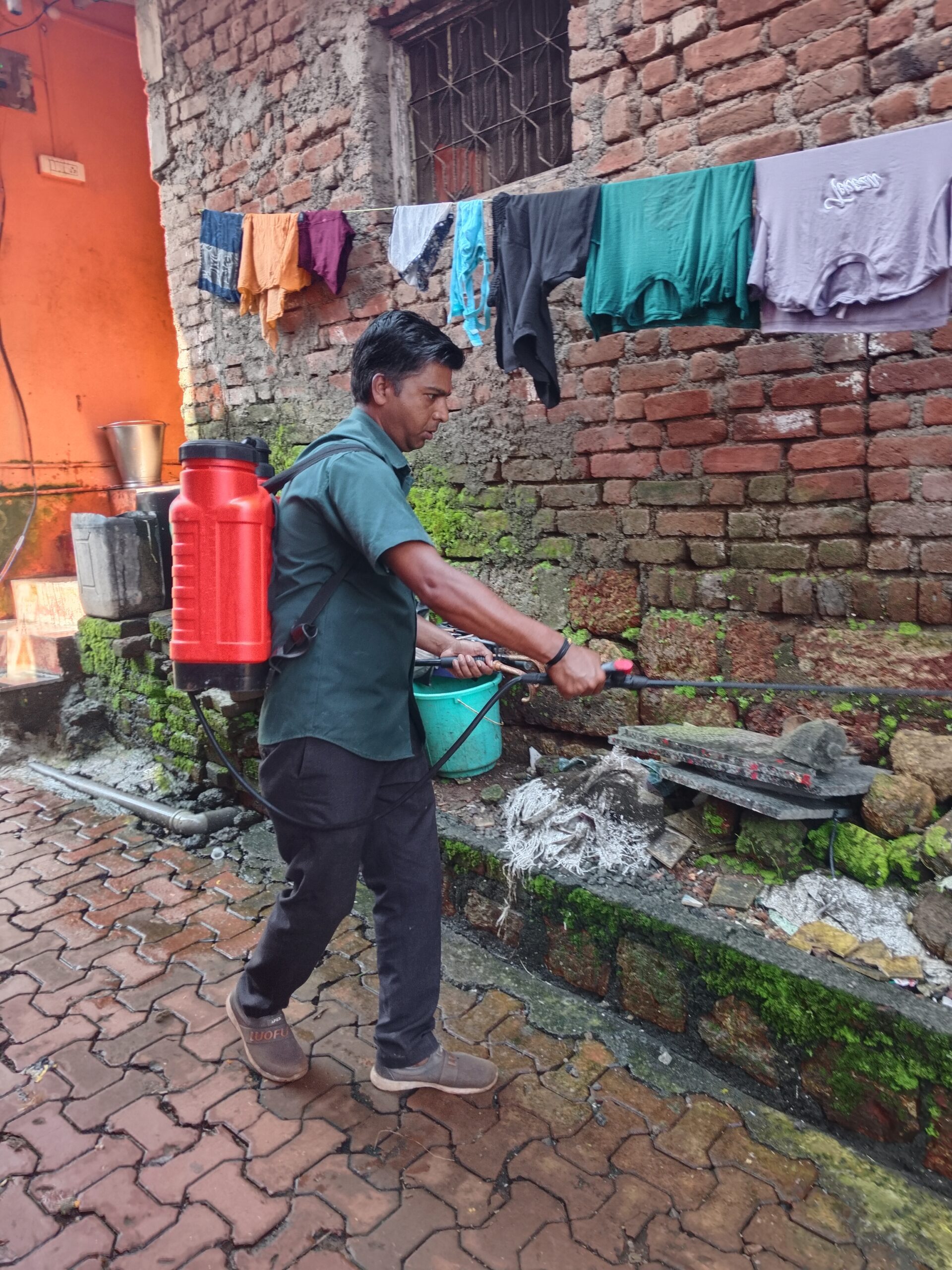 माथेरान : गावातील काही भागातील नागरिकांची स्वच्छतेच्या बाबतीत मानसिकता नसल्याने काही ठिकाणी डासांचा प्रादुर्भाव निर्माण झाला असून काही दिवसांपूर्वी डेंग्यूचे रुग्ण आढळून आले आहेत. त्यामुळे आरोग्य विषयक सावधगिरी बाळगून गावातील भागात नगरपरिषदेच्या माध्यमातून उत्तम प्रशासक तथा कार्यक्षम मुख्याधिकारी राहुल इंगळे यांच्या सूचनेनुसार जंतुनाशक फवारणी करण्यात येत आहे.