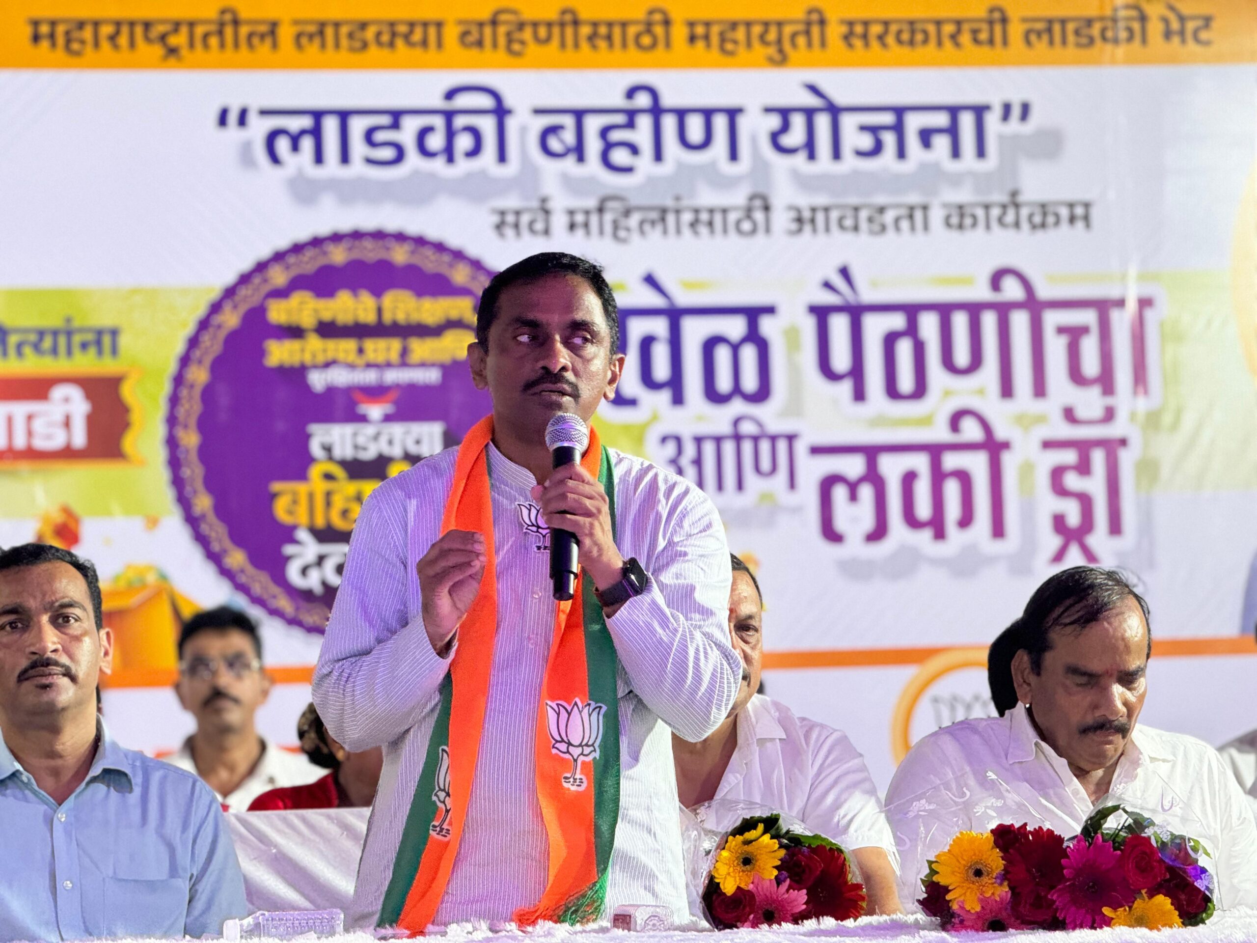 महाराष्ट्रातील लाडक्या बहिणींसाठी महायुती सरकारने मुख्यमंत्री लाडकी बहीण योजना सुरू केल्यानंतर महिलांकडून सरकारच्या या योजनेचे स्वागत केले जात आहे. याच महिलांचे आशीर्वाद घेण्यासाठी पनवेलमधील सर्व महिला भगिनींसाठी खेळ पैठणीचा आणि लकी ड्रॉ कार्यक्रमाचे आयोजन आमदार प्रशांत ठाकूर यांच्या मार्गदर्शनाखाली करण्यात येत असून बेलवलीमध्ये हा कार्यक्रम झाला. त्या वेळी ते बोलत होते. या कार्यक्रमाला महिलांनी मोठी गर्दी केली होती.