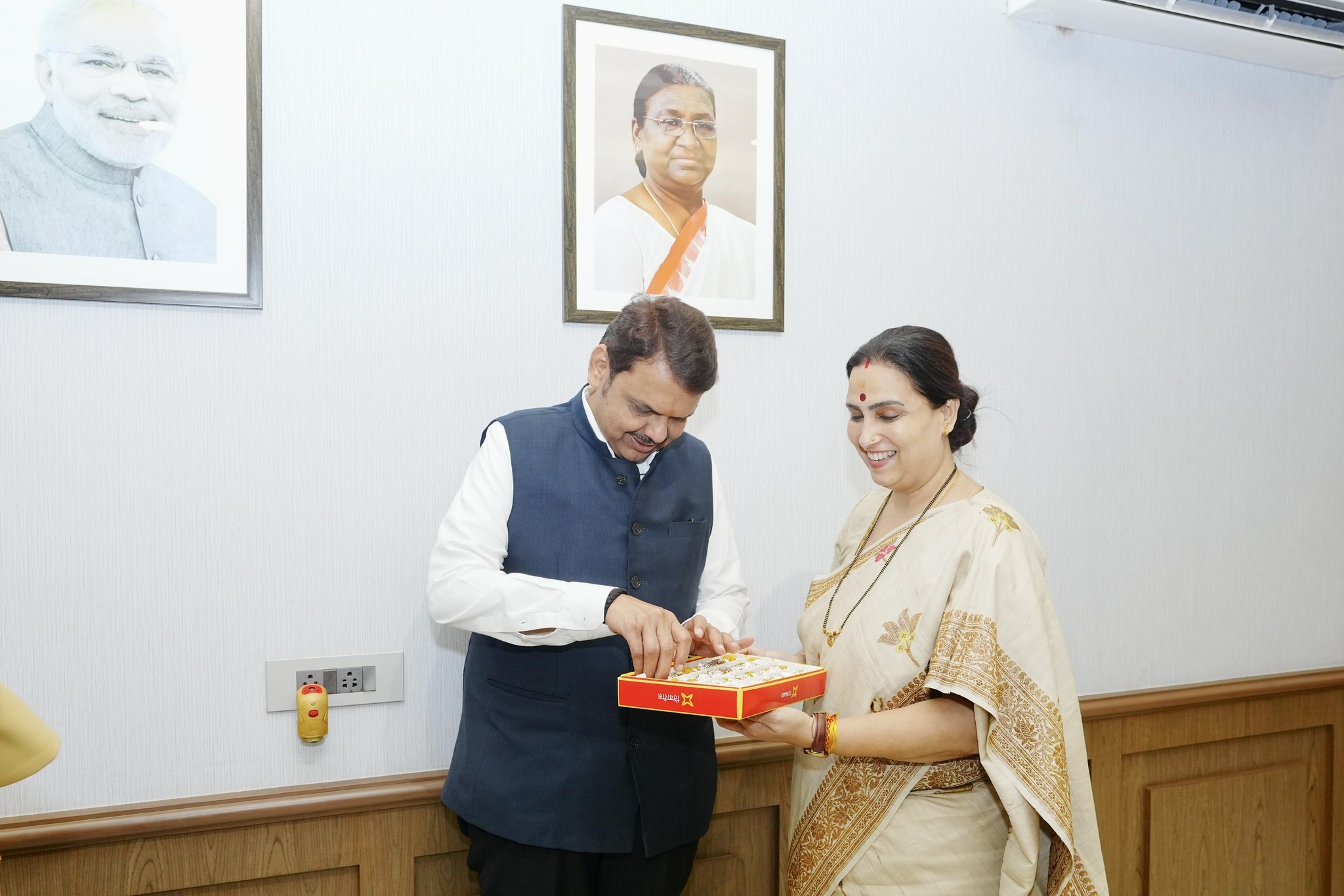 आमदारम्हणून शपथघेतल्यानंतर चित्रा वाघ यांचे अभिनंदन करताना महाराष्ट्राचे उपमुख्यमंत्री देवेंद्र फडणवीस.