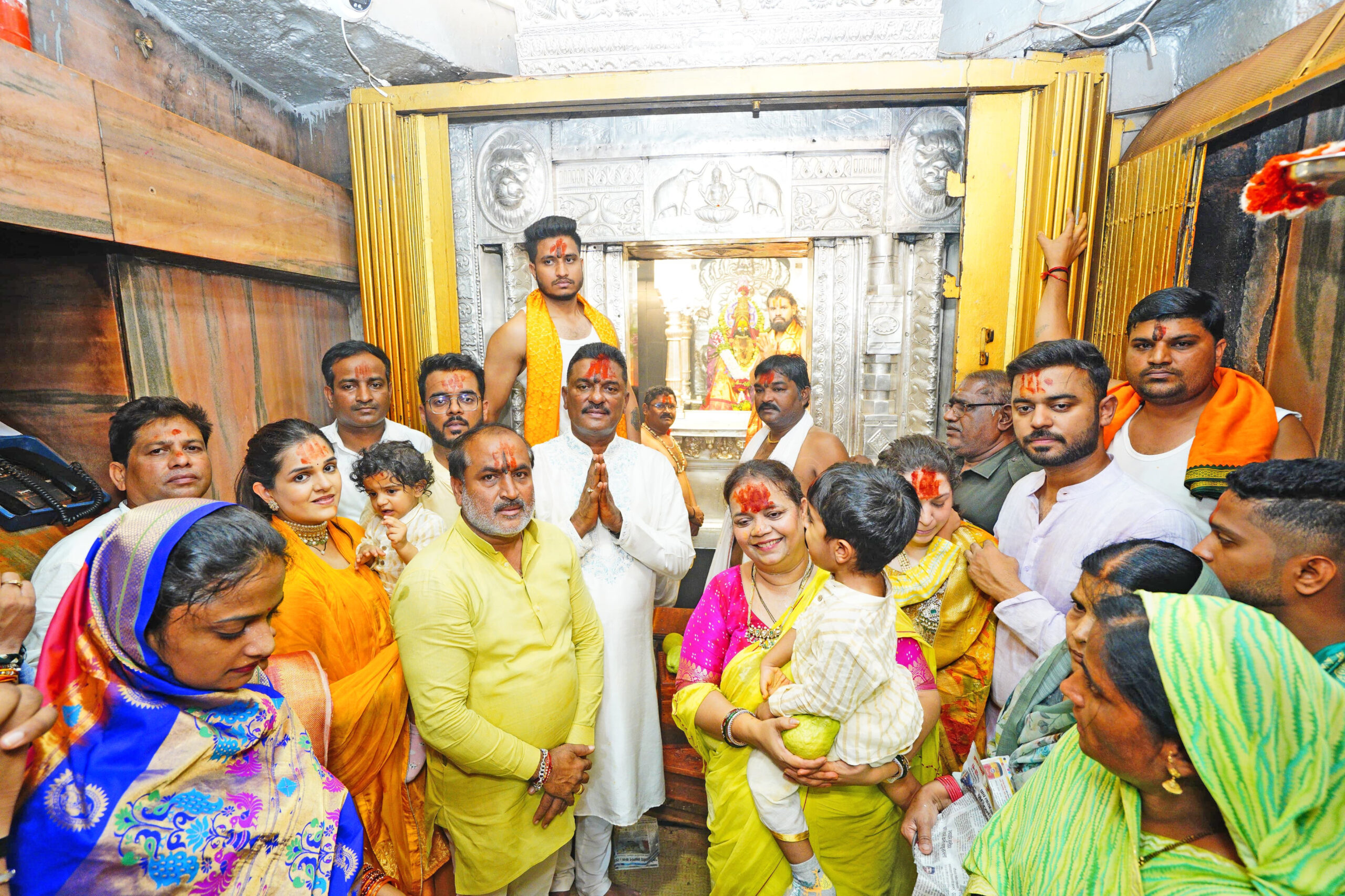 ठाणे : महाराष्ट्रातील साडेतीन शक्तिपीठांपैकी तुळजापूर येथे श्री तुळजाभवानी देवीच्या मंदिरात शिवसेना आमदार प्रताप सरनाईक यांनी कुलस्वामिनी तुळजाभवानी मातेचे सहकुटुंब दर्शन घेतले. विधानसभा निवडणूक तोंडावर असताना सर्व आमदार तिकीट आणि आपल्या उमेदवारीसाठी धावपळ करत आहेत. परंतु यावेळी आमदार प्रताप सरनाईक यांनी सहकुटुंब तुळजाभवानी मातेचे दर्शन घेतले. जनसेवेचे हे अखंड व्रत यापुढे अविरत सुरू राहो तसेच सर्व आव्हान पेलण्याचे बळ मिळो अशी प्रार्थना प्रताप सरनाईक यांनी तुळजाभवनी आई चरणी केली. यावेळी त्यांची पत्नी परिषा सरनाईक आणि मुलगा युवासेना कार्याध्यक्ष पुर्वेश सरनाईक, विहंग सरनाईक तसेच सुना, नातवंड असा संपूर्ण सरनाईक परिवार सोबत होता.