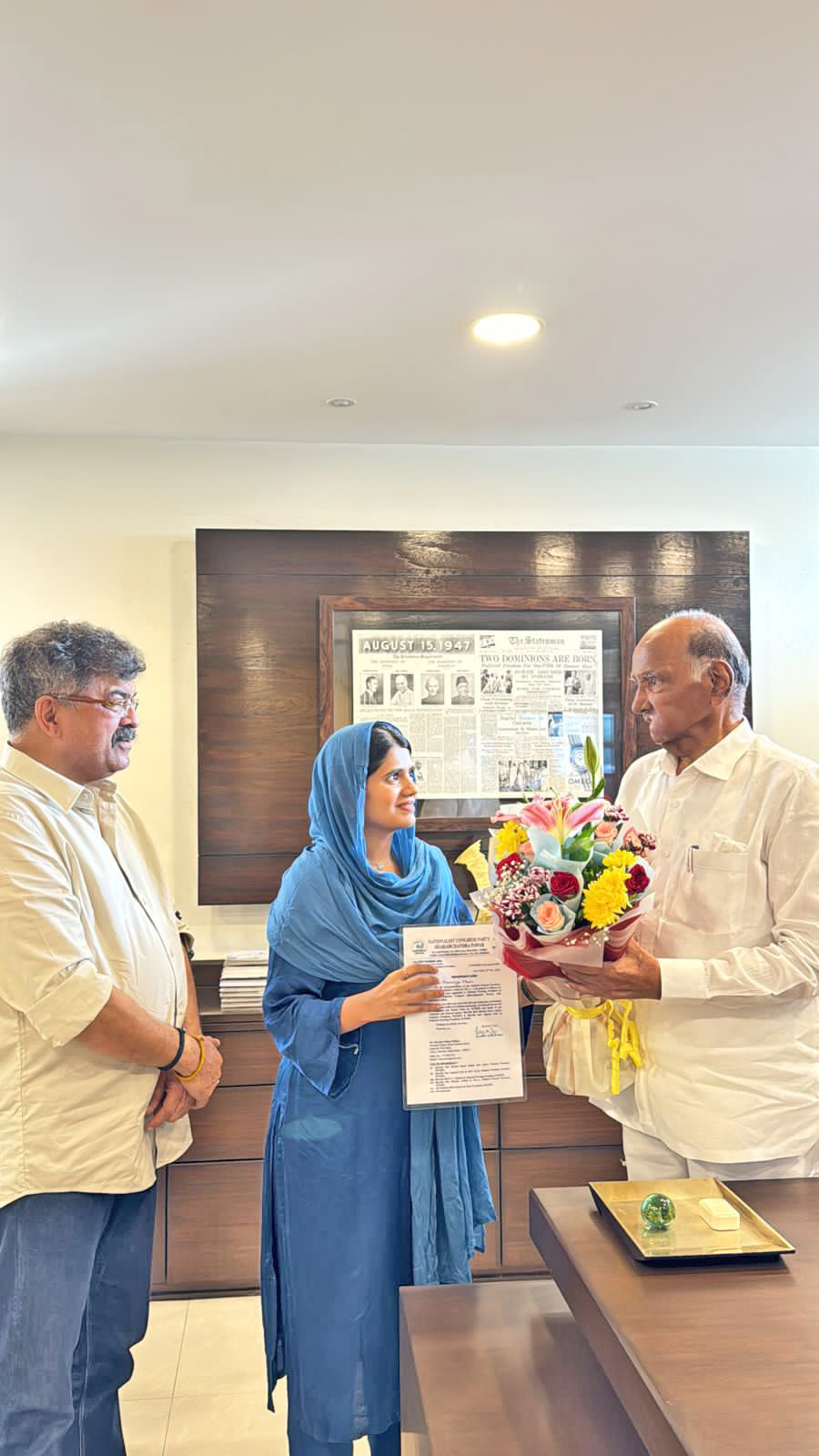 मर्झिया शानू पठाण या गेल्या काही वर्षांपासून सबंध ठाणे शहरात लढाऊ कार्यकर्त्या म्हणून परिचित आहेत. पाणी, कचरा, आरोग्य, महिला अत्याचार आदी प्रश्नांवर त्या सातत्यपूर्ण लढा उभारत आल्या आहेत. मधल्या काळात त्यांनी केलेल्या आंदोलनामुळे मुंब्रा आणि ठाणे शहरातील अनेक समस्यांचा निपटारा झाला होता. उच्चशिक्षित असलेल्या मर्झिया पठाण यांनी विद्यार्थ्यांचे प्रश्न घेऊन शासनाशी संघर्ष करीत आहेतच; शिवाय, विद्यार्थी आणि तरूणांमध्ये संविधानाप्रति जनजागृती करण्यासाठी विविध कार्यक्रमही आयोजित केले आहेत. त्यांच्या कामाची दखल घेऊन डाॅ.जितेंद्र आव्हाड यांच्या पुढाकारातून राष्ट्रवादी विद्यार्थी काँग्रेस पक्ष-शरदचंद्र पवार चे राष्ट्रीय अध्यक्ष राजीवकुमार झा यांनी मर्झिया पठाण यांची कार्याध्यक्षपदी नियुक्ती केली. आज शरद पवार आणि डाॅ.जितेंद्र आव्हाड यांच्या हस्ते पठाण यांना नियुक्तीपत्र दिले. दरम्यान, यावेळेस मुंब्रा, कौसा, ठाणे , आदी भागातील अनेक तरूणांनी राष्ट्रवादी काँग्रेस- शरदचंद्र पवार पक्षामध्ये प्रवेश केला.