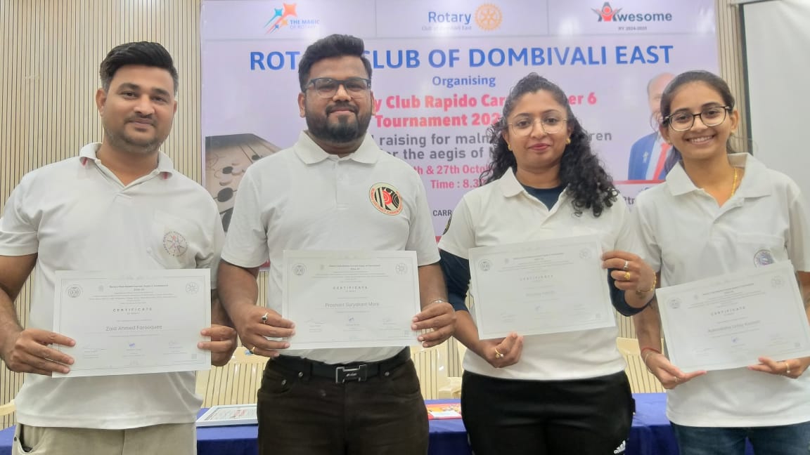 रोटरी क्लब ऑफ डोंबिवलीचे अध्यक्ष माधव सिंग, सचिव चक्रपाणी शुक्ला, राज्य कॅरम संघटनेचे सचिव अरुण केदार, खजिनदार अजित सावंत, ठाणे डिस्ट्रिक्ट कॅरम असोसिएशनचे सचिव जितेंद्र दळवी व आंतर राष्ट्रीय पंच आशिष बागकार यांच्या उपस्थितीत विजेत्यांना रोख पारितोषिके व प्रशस्ती पत्र देऊन गौरविण्यात आले. कुपोषित बालकांना मदत कारण्याहेतू आयोजित करण्यात आलेल्या या स्पर्धेसाठी महाराष्ट्र कॅरम असोसिएशन व ठाणे डिस्ट्रिक्ट कॅरम असोसिएशनने केलेल्या विशेष मदतीसाठी रोटरी क्लब ऑफ डोंबिवलीचे अध्यक्ष माधव सिंग यांनी महाराष्ट्र कॅरम असोसिएशन व ठाणे डिस्ट्रिक्ट कॅरम असोसिएशनला साईटेशन देऊन सन्मानित केले.