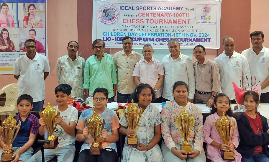 ९ वर्षाखालील मुलांमध्ये अहान जॉलीने (४ गुण) प्रथम, कृषिव गालाने (३.५ गुण) द्वितीय, अगस्त्य गुरवने (३ गुण) तृतीय, कबीर पिंगेने (३ गुण) चौथा, मार्तंड गजणेने (३ गुण) पाचवा तर मुलींमध्ये आराध्या पुरोने (४.५ गुण) प्रथम, आराध्या कामतने (२.५ गुण) द्वितीय; ११ वर्षाखालील मुलांमध्ये नील भंडारीने (५ गुण) प्रथम, कविर मोदीने (४ गुण) द्वितीय, अनय भांगरेने (३ गुण) तृतीय, आर्यन झाने (३ गुण) चौथा, संकीत संघवीने (३ गुण) पाचवा तर मुलींमध्ये अक्षा मंगलापल्लीने (३ गुण) प्रथम, सिम्रिता बुबनाने (२ गुण) द्वितीय आणि १३ वर्षाखालील मुलांमध्ये आद्विक अगरवालने (५ गुण) प्रथम, देवांश राठोडने (३ गुण) द्वितीय, फेरद्यन लोबोने (३ गुण) तृतीय, समर्थ साळगावकरने (३ गुण) चौथा, स्मित रेवस्करने (२.५ गुण) पाचवा तर मुलींमध्ये आर्या नाईकने (४ गुण) प्रथम, शहाना कृष्णनने (३ गुण) द्वितीय पुरस्कार पटकाविला. स्पर्धेचा पारितोषिक वितरण समारंभ आयडियल स्पोर्ट्स अकॅडमीचे सेक्रेटरी राजन राणे, क्रीडाप्रेमी विलास डांगे व चंद्रकांत करंगुटकर, मुंबई शहर बुध्दिबळ संघटनेचे सेक्रेटरी राजाबाबू गजेंगी, शिवछत्रपती पुरस्कार विजेते लीलाधर चव्हाण आदींच्या प्रमुख उपस्थितीत संपन्न झाला.