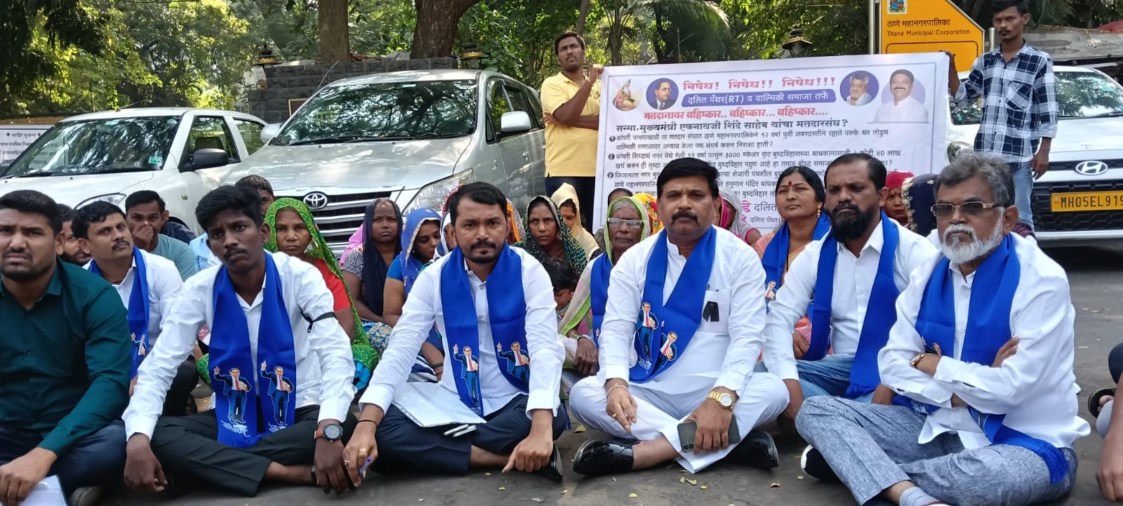 मुख्यमंत्री एकनाथ शिंदे यांच्या कोपरी पाचपखाडी मतदार संघात रहाणाऱ्या वाल्मिकी समाजावर गेल्या काही वर्षांपासून अन्याय होतो आहे. मात्र अन्यायाला वाचा फोडण्यासाठी कोणीही पुढाकार घेताना दिसून येत नाही. महाराष्ट्राचे मुख्यमंत्री एकनाथ शिंदे यांच्या विधानसभा क्षेत्रात राहून देखील वाल्मिकी समाजाच्या घरांचा प्रश्न प्रलंबित आहे. कन्हैया नगर येथे ३० ते ३५ वर्षांपासून वाल्मिकी समाजाची ४५ पक्की घर होती. पालिकेने त्याच्या जागेत मलनिःसारण प्रकल्प बांधणार असल्याचे सांगून घर खाली करायला लावली. मात्र अजून देखील कोणालाच घर मिळालेली नाही. या ठिकाणी रहाणारे सर्वजण पालिकेच्या घनकचरा विभागात कॉन्ट्रॅक्टर कडे काम करणारी आहेत. गेल्या १२ वर्षांपासून आपल्याला पक्क घर मिळावे यासाठी प्रयत्न करत आहेत. परंतु घराचा प्रश्न अजून मार्गी लागलेला नाही. प्रत्येक विधानसभा निवडणुकीत घराचा प्रश्न मार्गी लावू असे मुख्यमंत्री एकनाथ शिंदे यांनी सांगितले असेल तरी घर दिले नसल्याचा थेट आरोप दलित पँथरचे राष्ट्रीय अध्यक्ष रामभाऊ तायडे यांनी दिला आहे.