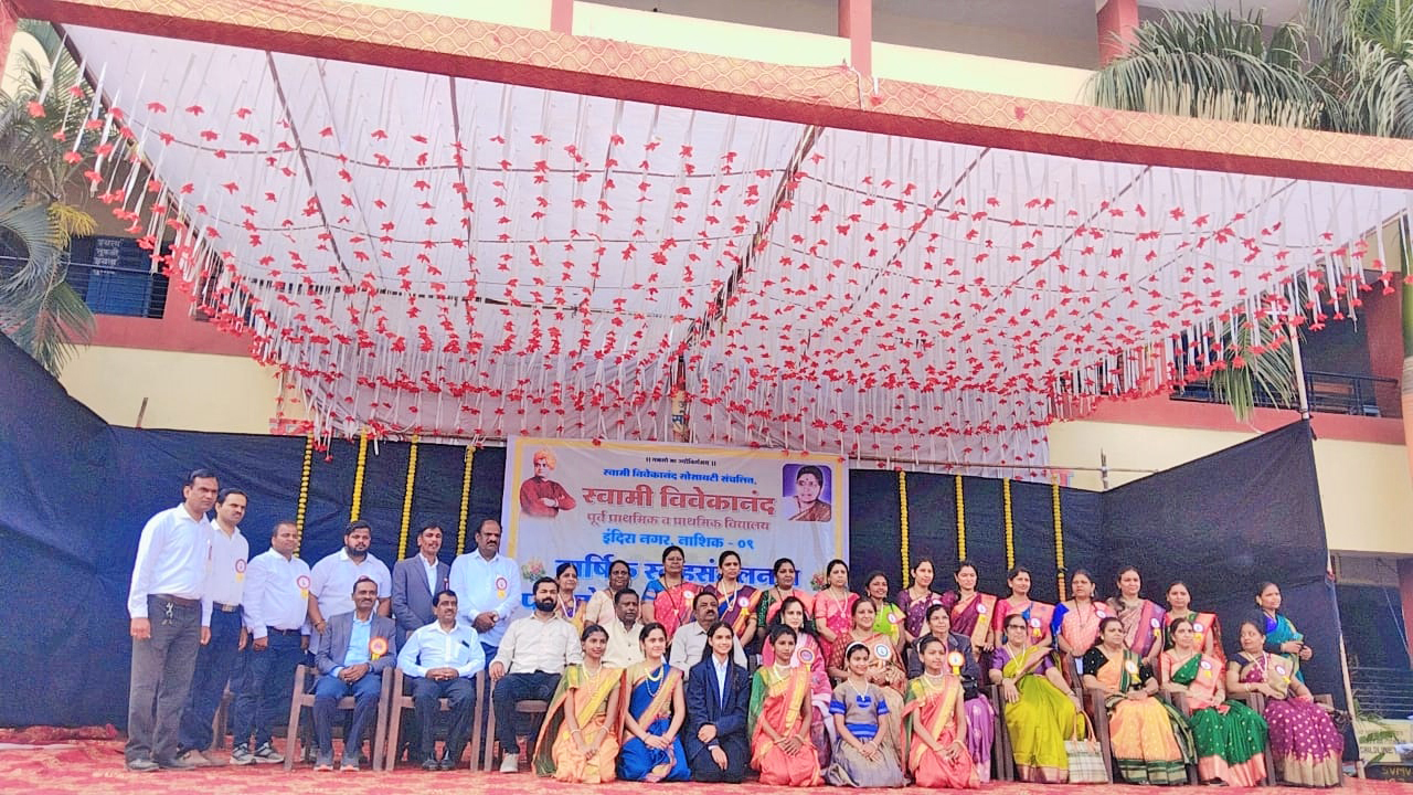 नाशिक : स्वामी विवेकानंद प्राथमिक व माध्यमिक शाळा इंदिरानगर नाशिक येथे २७ डिसेंबरला वार्षिक स्नेहसंमेलनाच्या कार्यक्रमाचे आयोजन करण्यात आले होते. या कार्यक्रमाचे प्रमुख पाहूणे प्राचार्य विलासकुमार देशमुख यांच्यासह माजी विद्यार्थिनी बागेश्री मानसी मनोज पारनेरकर, वृंदा जोशी, प्ररेणा कुलकर्णी, जयसिंह पवार, माधुरी देशपांडे, रत्नाकर वेळीस, राम बडोदे, दिपाली साळवे, आशा नागरे इत्यादी मान्यवरांच्या उपस्थितीत हा कार्यक्रम मोठ्या उत्हासात साजरा झाला.