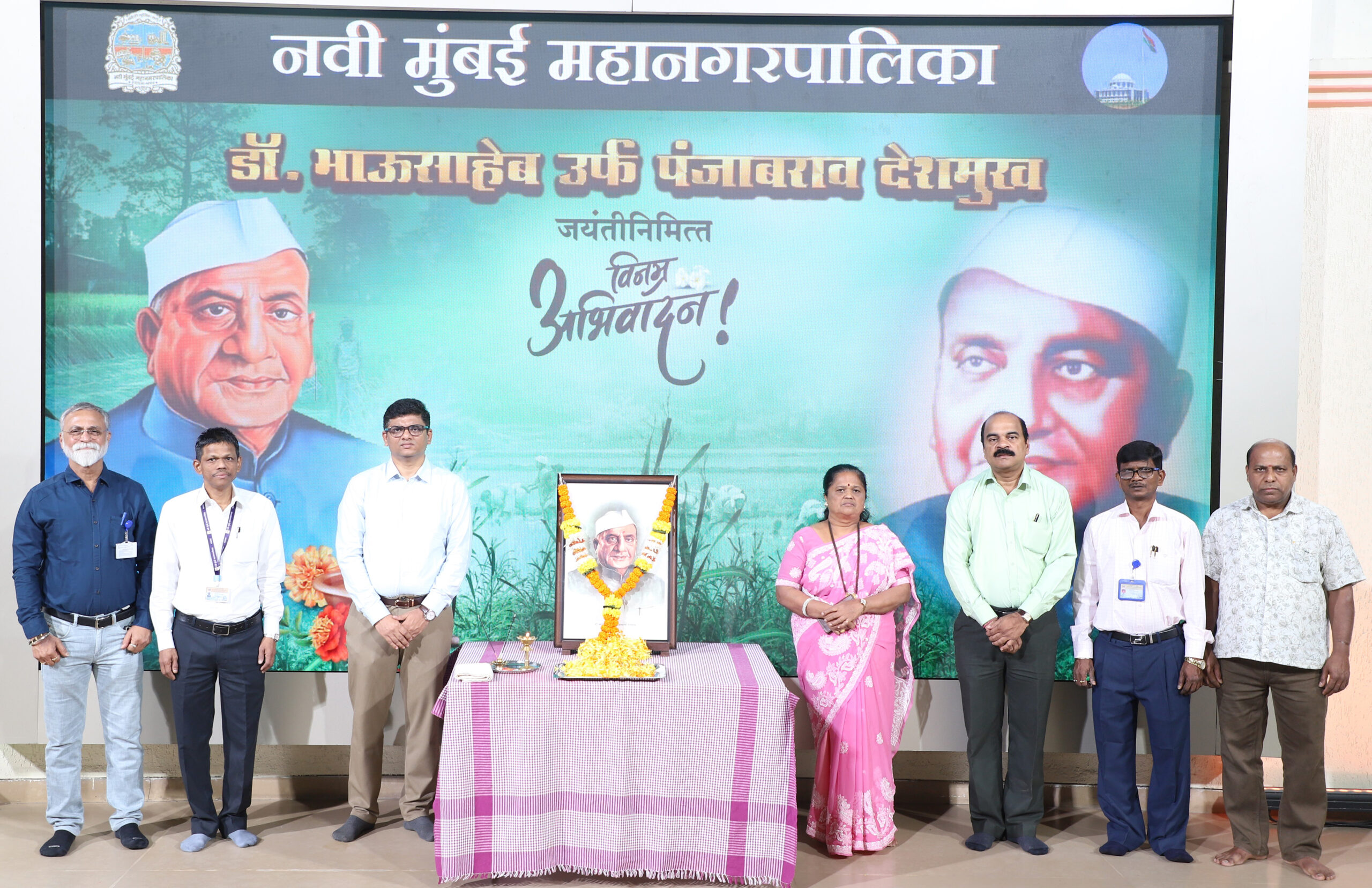 भारताचे पहिले कृषिमंत्री व शिक्षणमहर्षी डॉ.भाऊसाहेब ऊर्फ पंजाबराव देशमुख यांच्या जयंतीनिमित्त नवी मुंबई महानगरपालिका मुख्यालयात ॲम्फिथिएटर येथे प्रशासन विभागाचे उपआयुक्त श्री.शरद पवार यांच्या शुभहस्ते प्रतिमापूजन संपन्न झाले. याप्रसंगी शिक्षणाधिकारी श्रीम. अरूणा यादव, विधी अधिकारी श्री.अभय जाधव, प्रशासकीय अधिकारी श्री. विलास मलुष्टे, श्री. रवी जाधव आणि इतर अधिकारी – कर्मचारी उपस्थित होते.