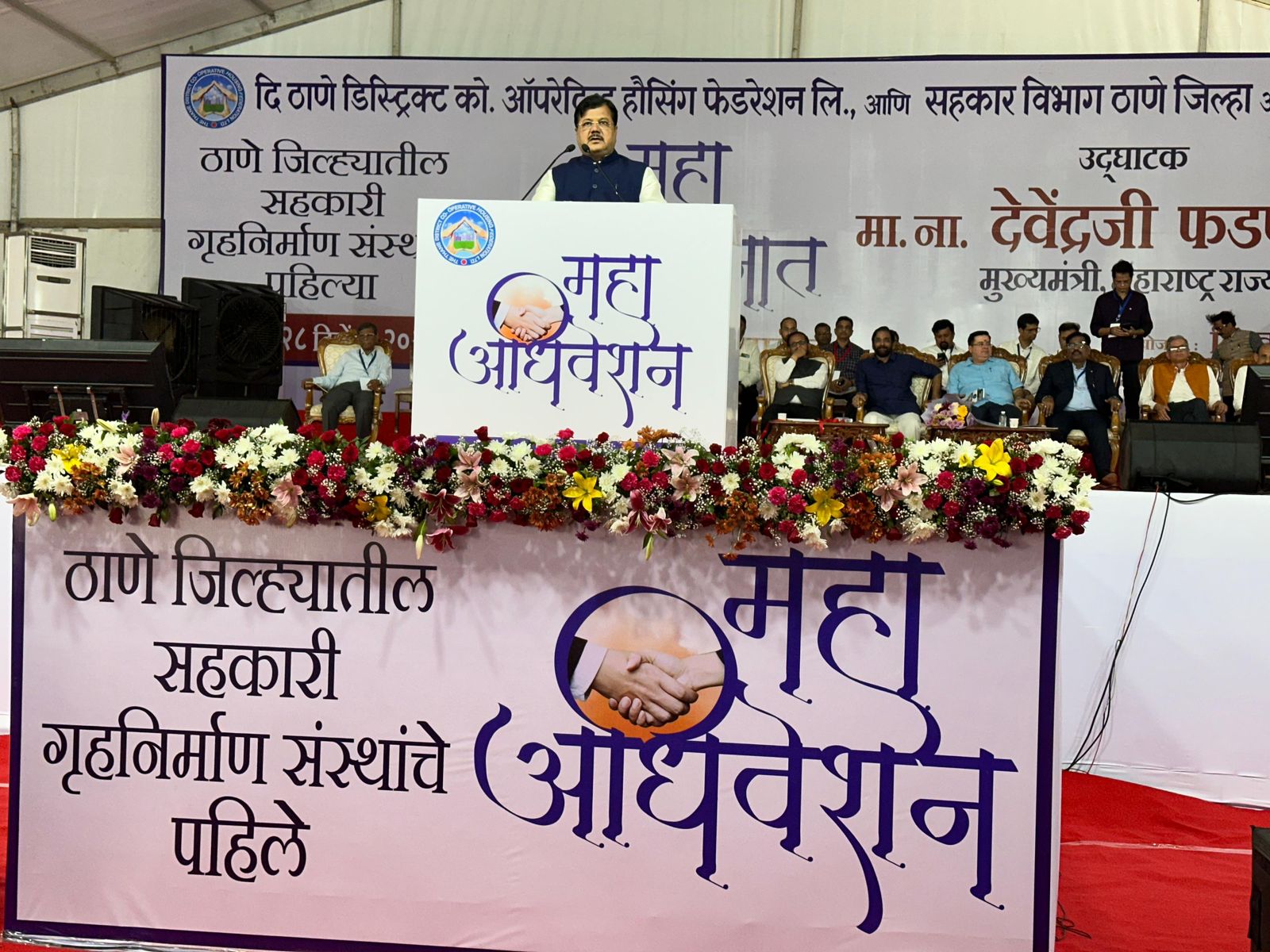 माजी पंतप्रधान मनमोहन सिंग यांच्या दुःखद निधनामुळे देशभर सात दिवसांचा राष्ट्रीय दुखवटा पाळला जात आहे. त्यामुळे मुख्यमंत्री देवेंद्र फडणवीस यांनी उपस्थितांशी आ. दरेकर यांच्या फोनवरून संवाद साधला. या महा अधिवेशनाला ठाण्याचे खासदार नरेश म्हस्के, ठाण्याचे आमदार संजय केळकर, माजी खासदार आनंद परांजपे, महपरिषदेचे आयोजक व ठाणे हौसिंग फेडरेशनचे अध्यक्ष सीताराम राणे, कोकण सहकार विभागाचे सहनिबंधक मिलिंद भालेराव, जिल्हा उपनिबंधक किशोर मांडे, मुंबई हौसिंग फेडरेशनचे अध्यक्ष प्रकाश दरेकर, राज्य हौसिंग फेडरेशनचे अध्यक्ष पुणे सुहास पटवर्धन, विकास पाटील यांसह हौसिंग सेक्टरमधील पदाधिकारी उपस्थित होते.
