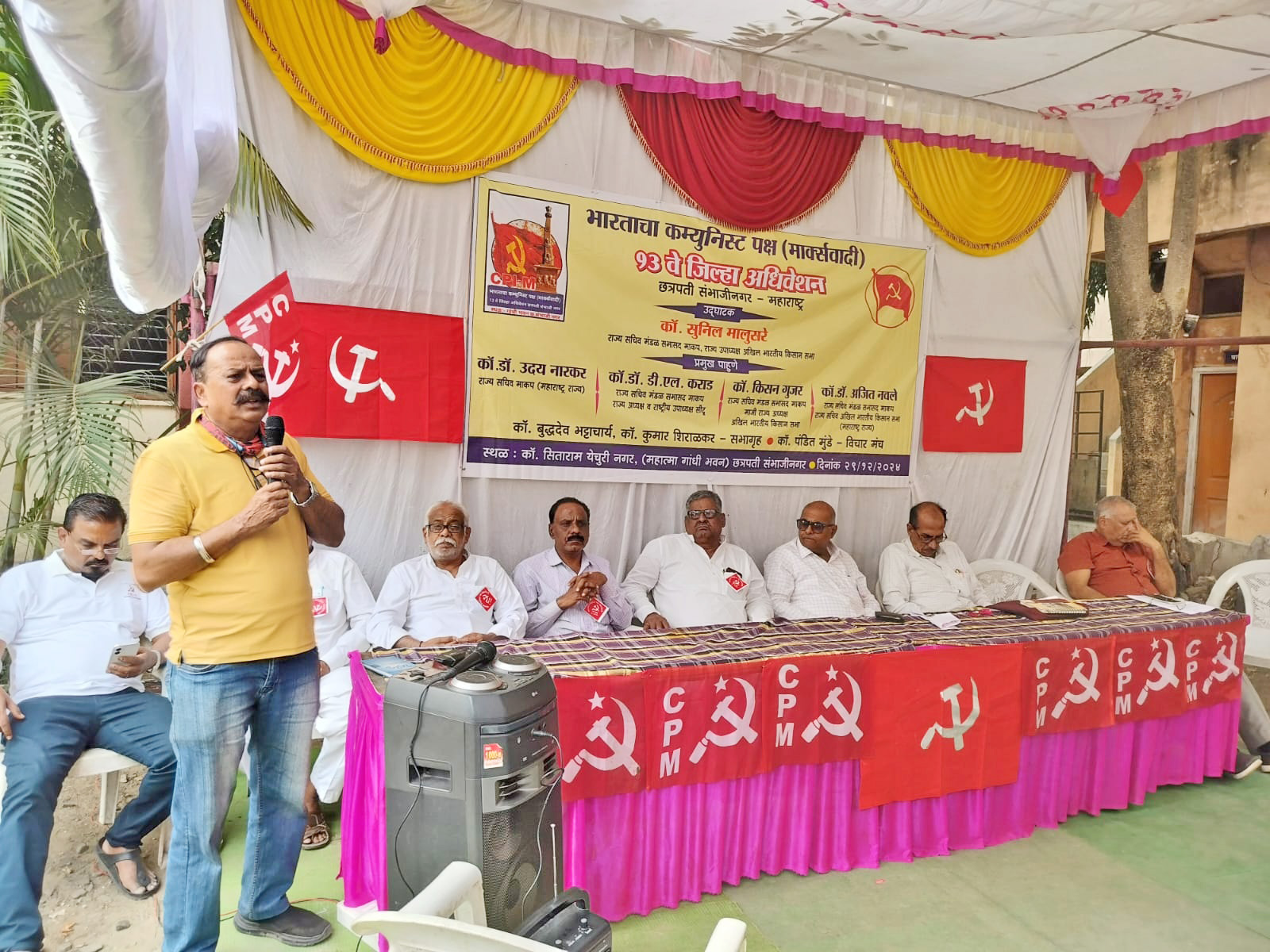 ठाणे : २९ डिसेंबरला मार्क्सवादी कम्युनिस्ट पक्ष छत्रपती संभाजी महाराजनगरचे १३ वे जिल्हा अधिवेशन गांधी भवन जवळील मैदानात पार पडले या अधिवेशनात पुढील तीन वर्षासाठी भगवान भोजने यांचे जिल्हा सचिवपदी फेरनिवड करण्यात आली. या अधिवेशनाचे उद्घाटन मार्क्सवादी कम्युनिस्ट पक्षाचे राज्य सचिव मंडळ सदस्य सुनील मालुसरे यांनी केले. यावेळी जेष्ठ कामगार नेते डॉक्टर कॉम्रेड डी .एल. कराड व कॉ. किसन गुजर हे प्रमुख मार्गदर्शक म्हणून उपस्थित होते. यावेळी मागील तीन वर्षाच्या कामकाजाचा अहवाल सादर करण्यात आला यावर आलेल्या प्रतिनिधींनी चर्चा केली त्यानंतर महत्त्वपूर्ण ठराव पारित करण्यात आले. यामधे, २०२० चे शिक्षणाचे बाजारीकरण करणारे शैक्षणिक धोरण रद्द करा, कामगारांना देशोधडीला लावणारी कामगार संहीता रद्द करा, राज्यातील कायदा सुव्यवस्था राखण्यासाठी राज्य सरकारने लक्ष देणे आवश्यक आहे. सामाजिक न्यायाच्या प्रश्नावर पक्षाने योग्य हस्तक्षेप करून जनतेचा लढा उभारावा, शेतकी मलाला उत्पादन खर्चाच्या दीडपट हमीभाव जाहीर करावा यासाठी शेतकऱ्यांमध्ये पक्षाने व्यापक संघटन उभे करावे या विविध ठराव पारित करण्यात आले. विद्यार्थी युवक कामगार शेतकरी शेतमजूर महिला एकजुटीच्या आधारावर आगामी काळात पक्ष बांधणी करून सामान्य जनतेच्या प्रश्नावर संघर्ष करावा असा निर्धार याबद्दल अधिवेशनात करण्यात आला.