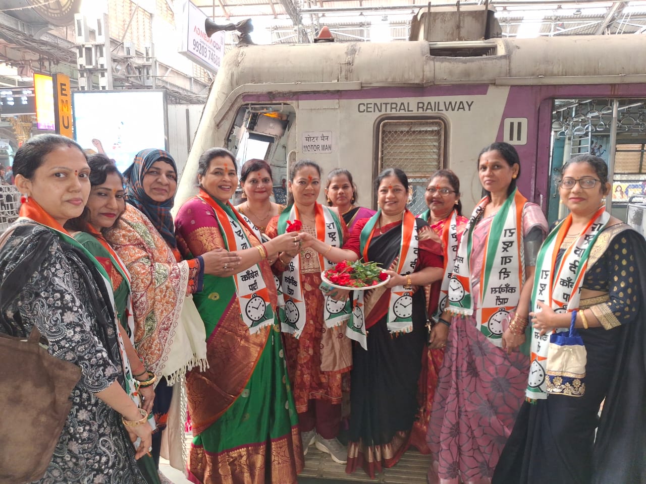 राष्ट्रवादी काँग्रेस पार्टीच्या मुंबई महिला अध्यक्षा आरतीताई साळवी यांच्या मार्गदर्शनाखाली सीएसटी रेल्वे स्थानकावर नोकरी करणाऱ्या महिलांसाठी हळदी कुंकू समारंभाचे आयोजन करण्यात आले होते. या समारंभाला चाकरमानी महिलांचा उत्स्फूर्त प्रतिसाद मिळाला. यावेळी महिलांनी एकमेकांना तिळाचे लाडू भरून तसेच गुलाबाचे फुल देऊन त्यांच्यासोबत हळदीकुंकू आणि मकर संक्रांति साजरी केली. आम्ही दरवर्षी महिलांसाठी हळदीकुंकू समारंभाचे आयोजन करत असतो या वर्षी देखील आम्ही उपमुख्यमंत्री अजित दादा पवार यांच्या मार्गदर्शनाखाली या हळदी कुंकू समारंभाचे आयोजन केले आहे. महिलांना कामानिमित्त तसेच नोकरी निमित्त हळदी कुंकू समारंभामध्ये भाग घेणे जमत नाही त्यासाठी आम्ही दरवर्षी सीएसटी रेल्वे स्थानकावर येऊन महिलांसोबत हळदीकुंकू समारंभ साजरा करतो यापुढे देखील आम्ही हा हळदी कुंकू समारंभ साजरा करणार असल्याची माहिती राष्ट्रवादी काँग्रेस पार्टीच्या मुंबई महिला अध्यक्ष आरती ताई साळवी यांनी दिली.यावेळी दक्षिण मुंबई जिल्हा अध्यक्षा स्मिता अंजेरकर, सुरेखा मेहेर, ज्योती कांबळे आणि इतर मान्यवर मंडळी उपस्थित होती.